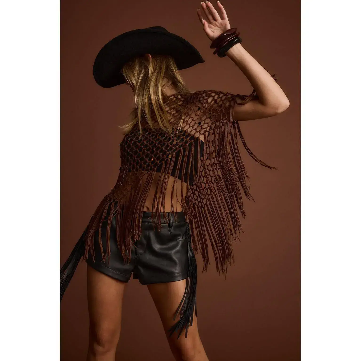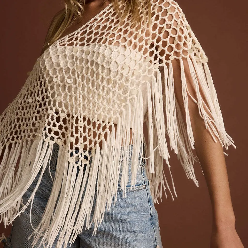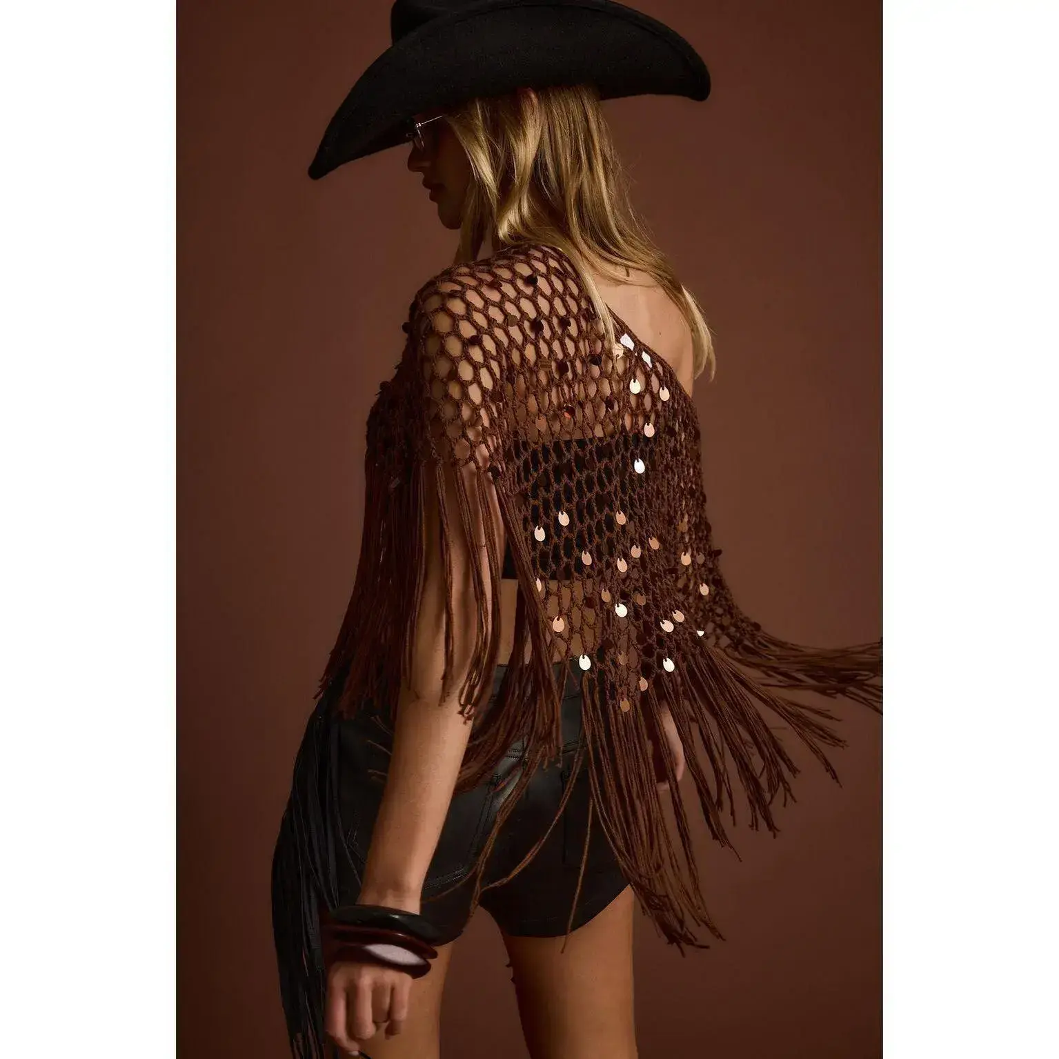 Desert nights just got a whole lot more dazzling with the Rianne Mocha Sequin Crochet Shawl. Featuring intricate crochet detail and a touch of sparkle, this shawl is the perfect mix of boho charm and statement-making glam. Layer it over your favorite festival fit or western-inspired look and let the Vixen take your vibe from dreamy to downright unforgettable.
