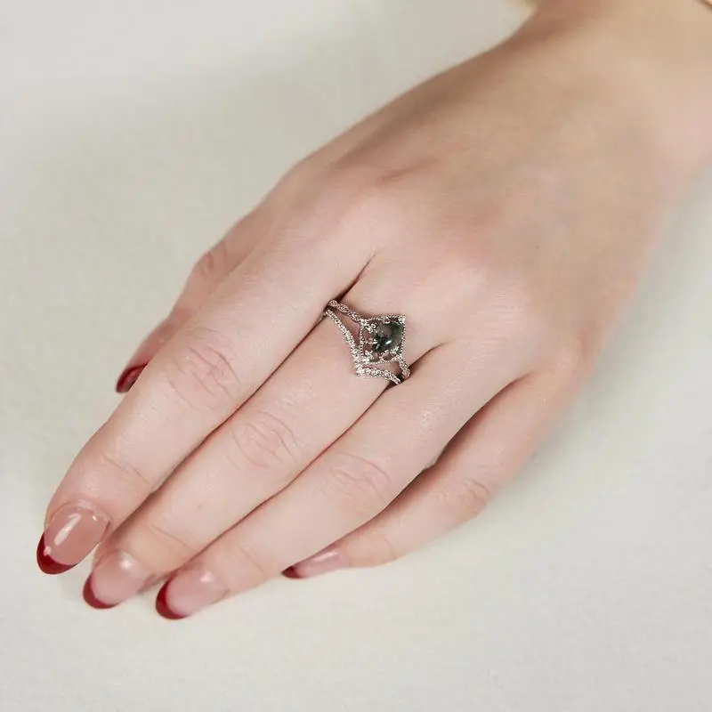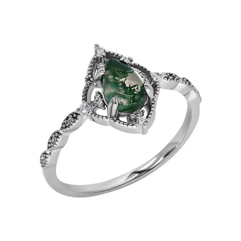 925 Sterling Sliver Natural moss agate Agate gemstone adorned with intricate patterns reminiscent of frost melting under the warmth of the spring sun. 1. **Wear and Care**: Avoid wearing synthetic moissanite during risky activities and steer clear of oils to prevent shine loss. For both synthetic moissanite and silver, avoid high temperatures and direct sunlight. Keep all jewelry in a safe, dry place when not being worn. Ensure synthetic moissanite and silver pieces are completely dry, and store silver in airtight bags to prevent oxidation. 3. **Regular Checks and Maintenance**: Regularly check synthetic moissanite settings and reinforce if loose. Clean synthetic moissanite and silver regularly to maintain their shine and prevent buildup. 4. **Cleaning Methods**: Use mild cleansers for synthetic moissanite and special cloths for silver. Ensure all jewelry pieces are dry after cleaning before storage. 5. **Tarnish Treatment**: Silver tarnishing and color fading are natural; use cleaner spray and a cotton swab for tarnish Logistic Note: We will do our best to package your item, but please note that shipping may sometimes result in minor damage to the package. In addition, unforeseen factors may also cause delivery delays. Don't worry! These are normal. But no matter what the problem is, please find us at the first time and we will solve it for you. Customer Service Support: Dear, before product ratings on an order, we advise you that if you have any questions or concerns - whether related to products, logistics or personal reasons - please feel free to contact our customer service team. We will be happy to assist you with any questions you may have. Thank you for your understanding!