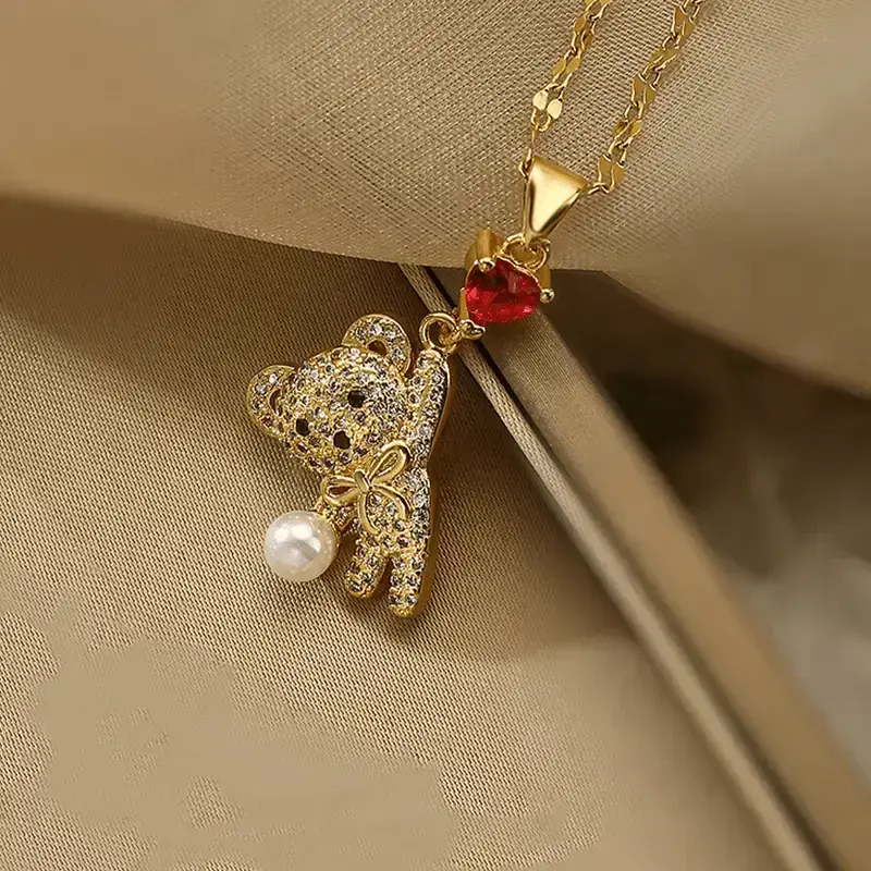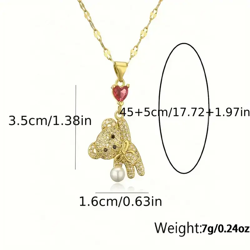 A Lovely Bear Pendant Necklace with Synthetic Zircon and 18K Gold Plated, Heart-Shaped Ornament, Elegant Jewelry for Everyday and Banquet Occasions-Suitable for All Seasons