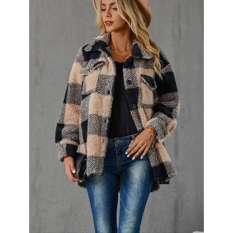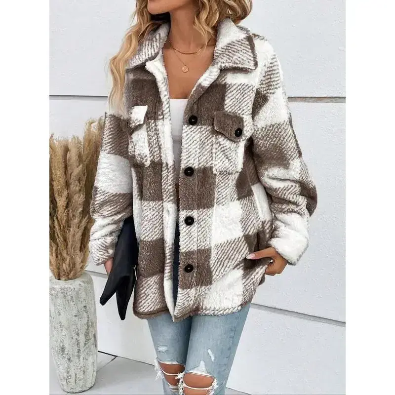High Camo Oversized Lace viral Fall and Winter Women's Plaid Fuzzy Button-Front Collared Drop-Shoulder Long-Sleeve Casual Daily Outerwear Jacket skirt outfit Prom Gown with Train Half Zip Fleece Pullover Cargo Pants Flap Pockets Waist Straight Leg Work