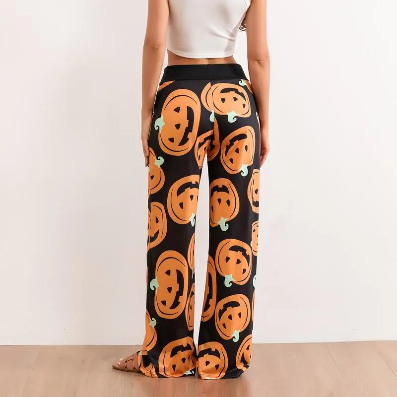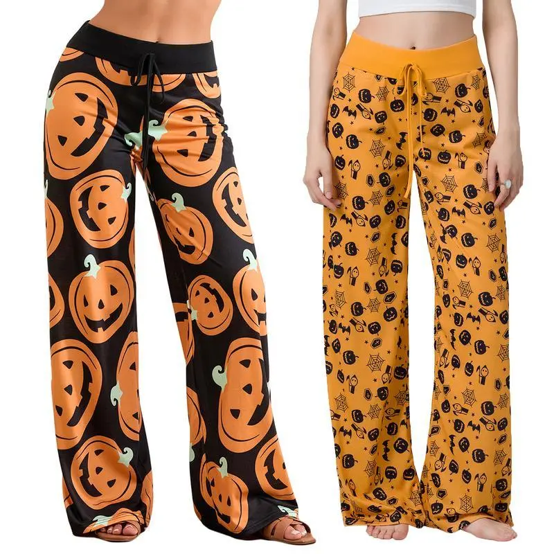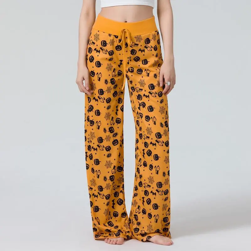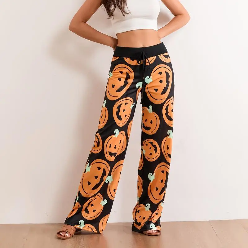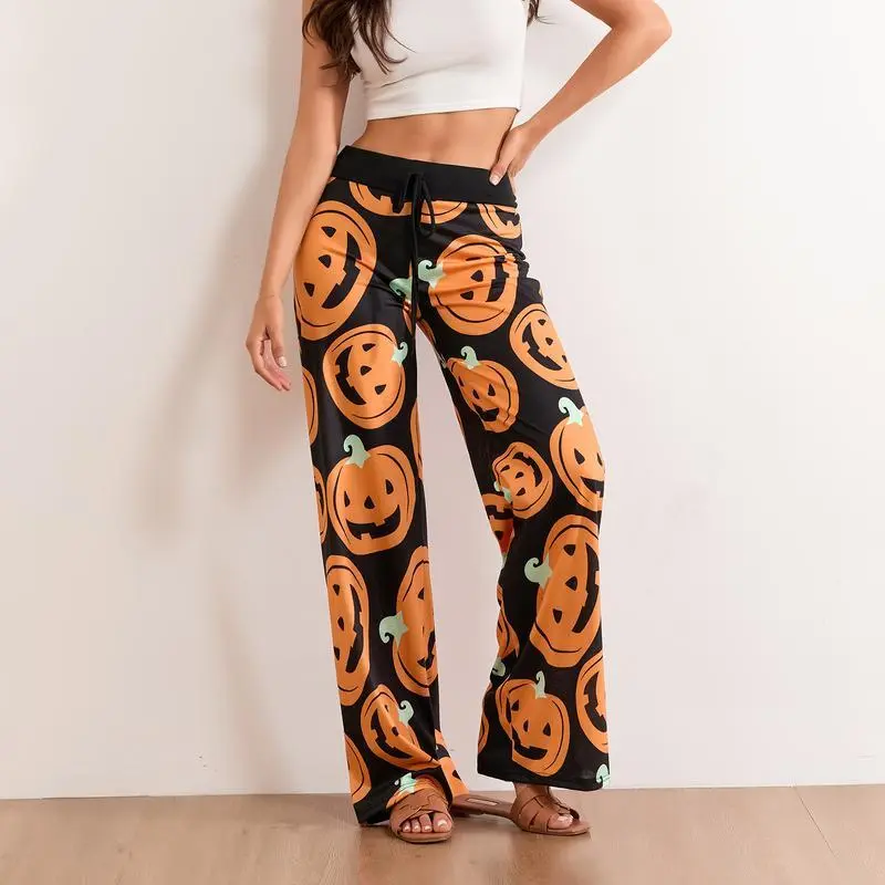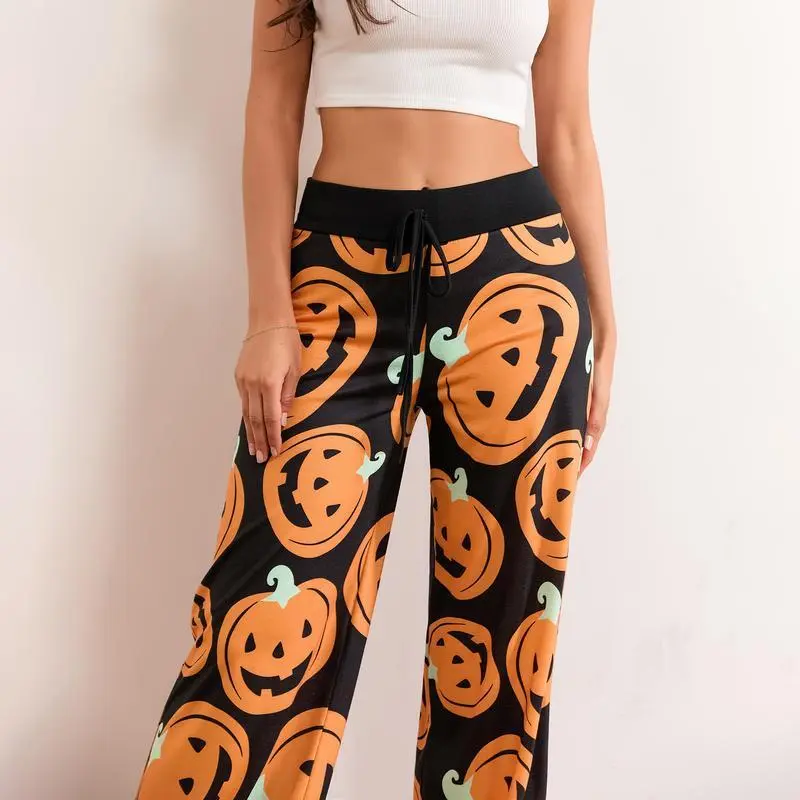 HalloweenPumpkinPajamaPantsforWomenPjsBottomsDrawstringWideLegJoggerLoungeYogaSweatPants