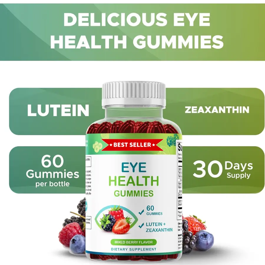 Each bottle contains 60 gummies for 30 complete servings. Enjoy eye health support without the hassle of swallowing pills. Perfect for daily use.