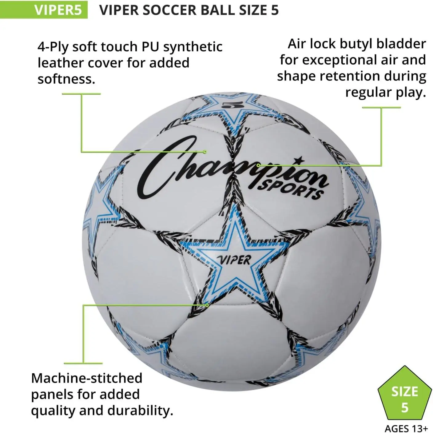 Champion Sports Viper Soccer Ball – TPU Soft-Touch Training Ball in Sizes 3,4,5 for Indoor/Outdoor Play