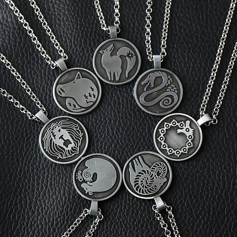 7pcs/setRetroTalismanPendantMen'sNecklaceSevenSinsTattooDragonFoxSnakePigSheepLionGrizzlyBearAlloyNecklaceJewelryGift