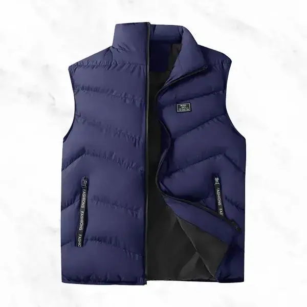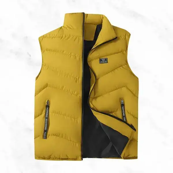 Men's Stand Collar Down Vest, featuring a stylish casual design, available in multiple colors, filled with warm padding, practical zipper pockets, suitable for everyday commutes and outdoor activities during the fall and winter seasons.