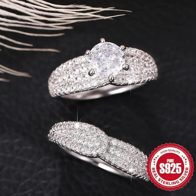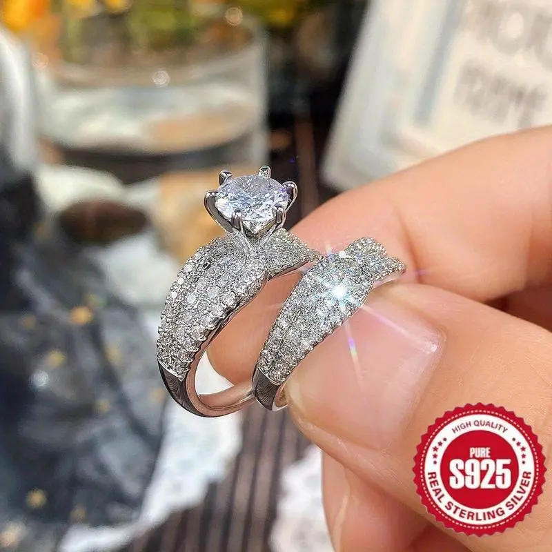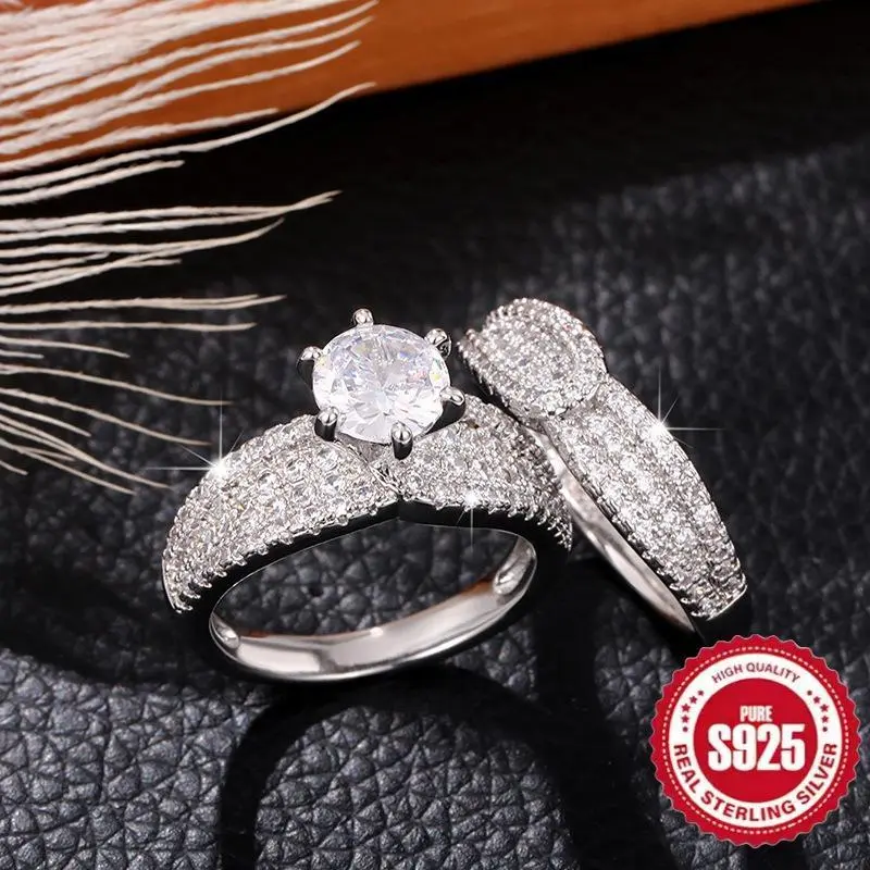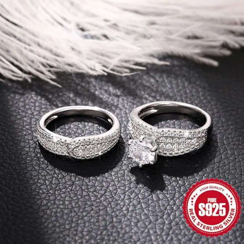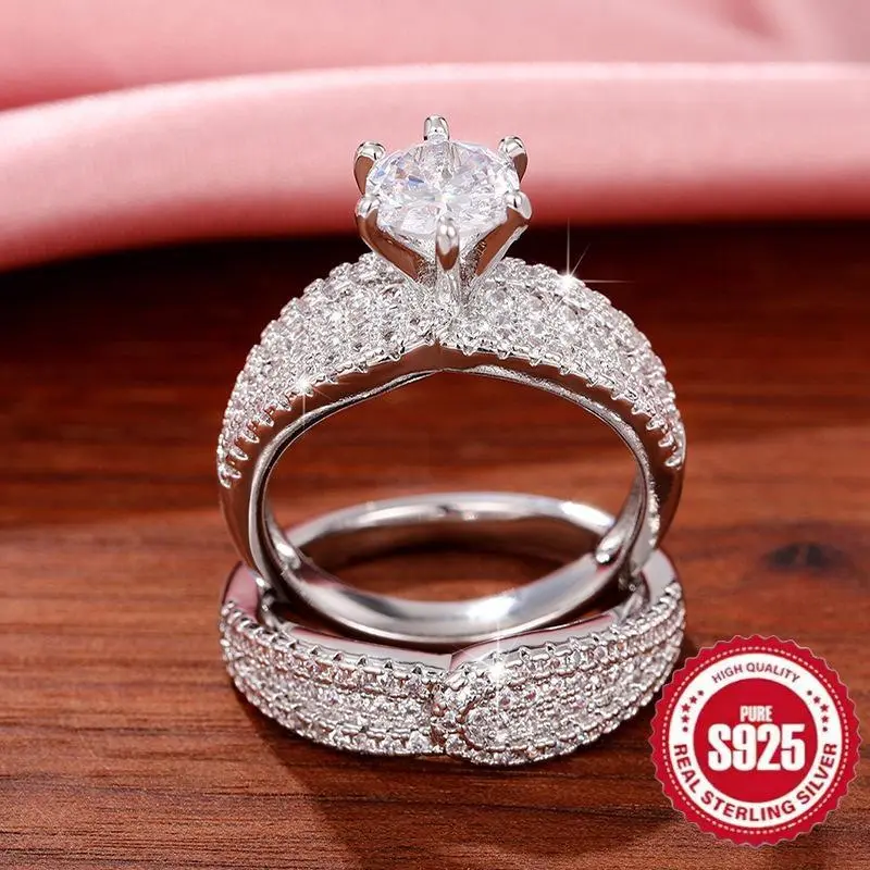 2-PieceSetof925SterlingSilverElegantRingwith6OneSpikes,SuitableasEngagementandWeddingJewelry,Unisex,PerfectGiftforLovers