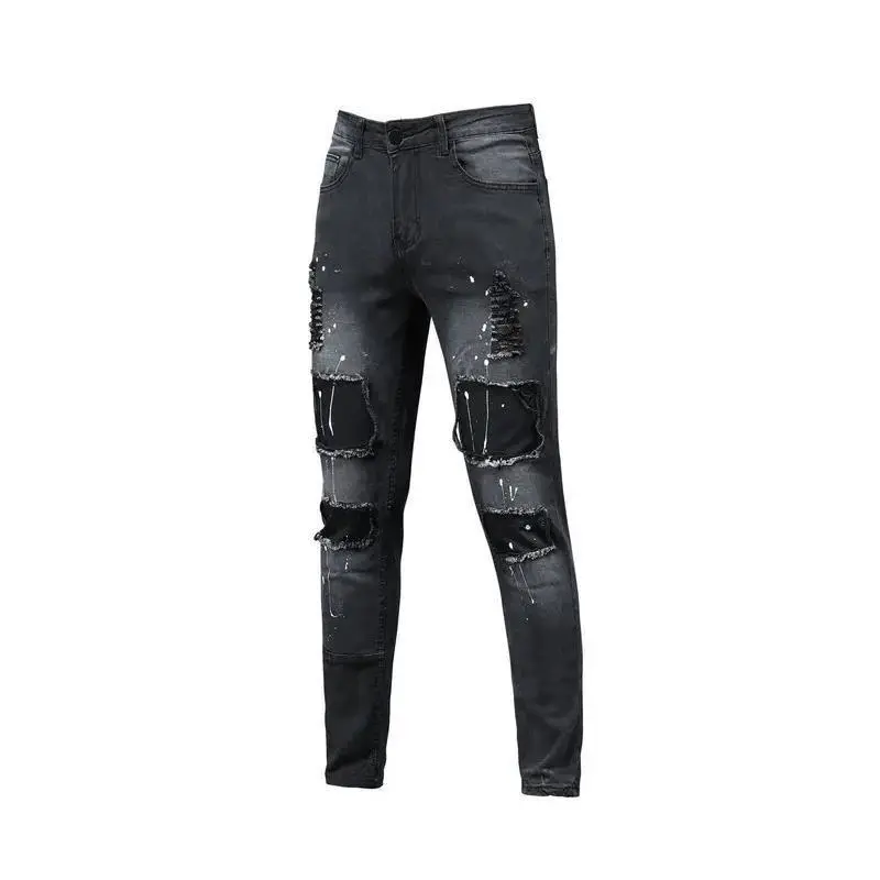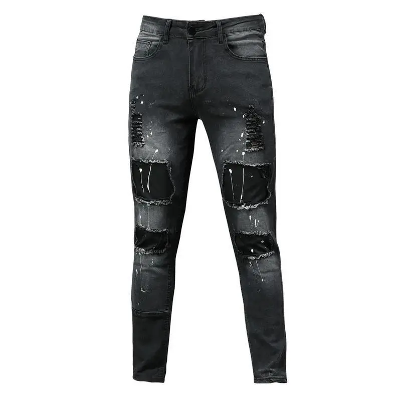 NexusGarbsMenStretchyRippedSkinnyBikerElasticfootJeansDestroyedHoleTapedSlimFitDenimScratchedHighQualityJean
