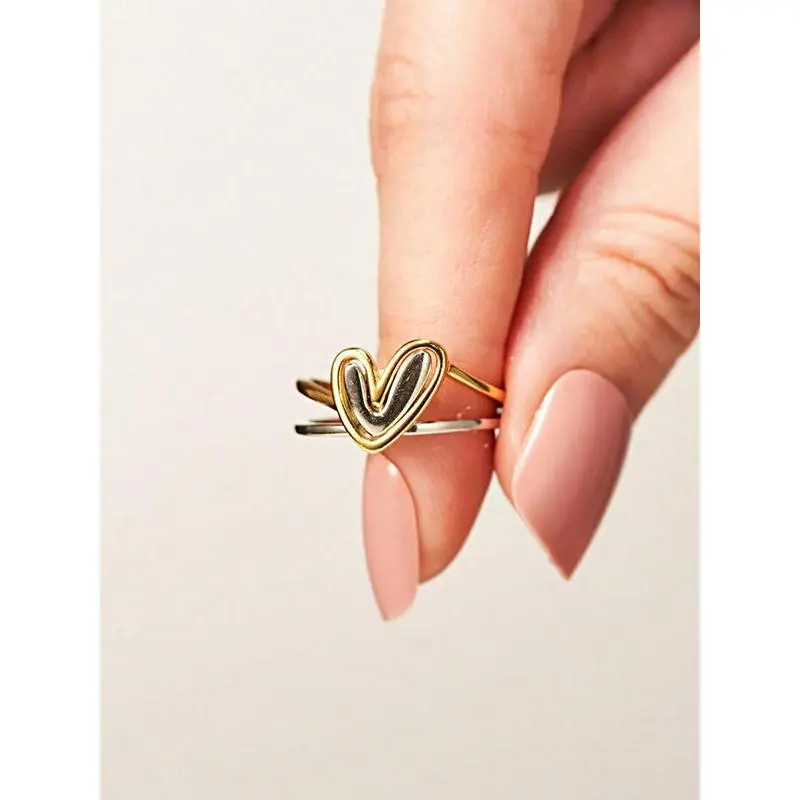 PAVOI 14K Gold Plated Heart Stackable Rings for Women - Love Valentines Statement Chunky Signet Ring Band - Friendship Rings