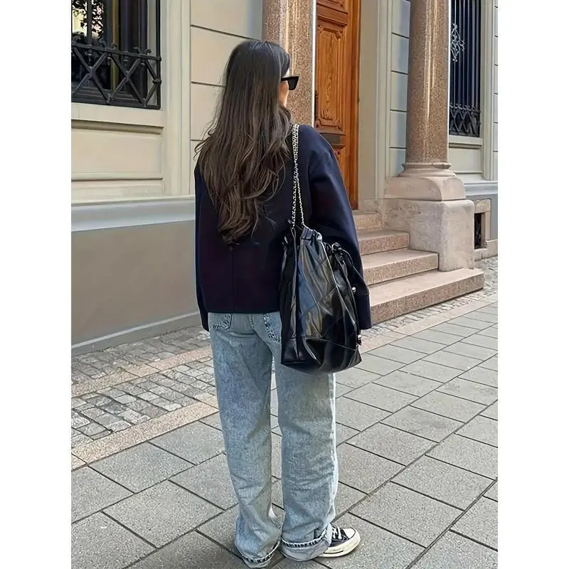 Deep blue double breasted buckle