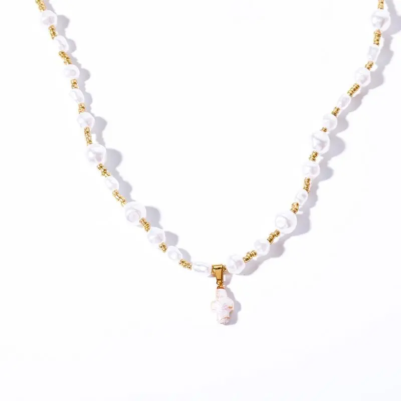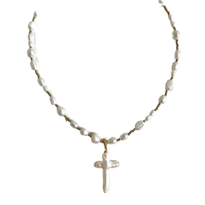 EuropeandAmericaCrossBorderHotSellingPearlNecklaceCrossShellNecklaceVintageArtisticBaroqueStyleNecklace