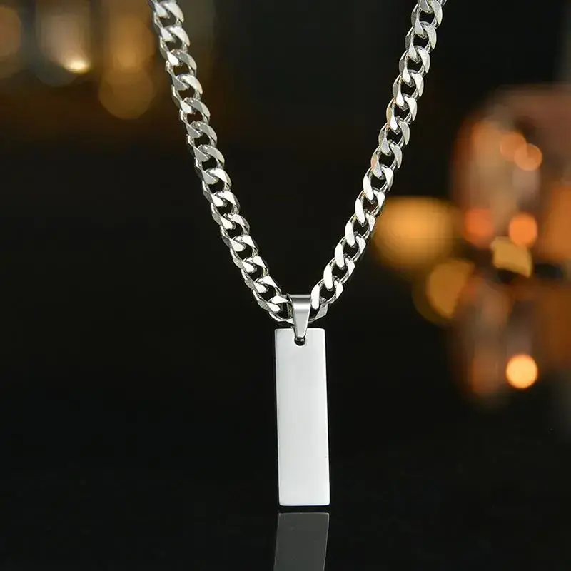 Stylish and minimalist font Cuban chain O-ring chain pendant, stainless steel military style necklace, creative gift for men and women