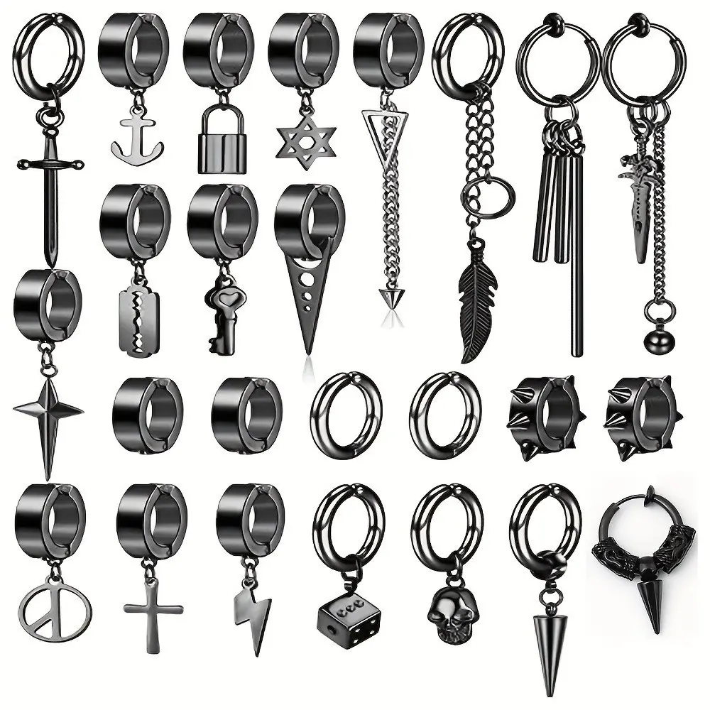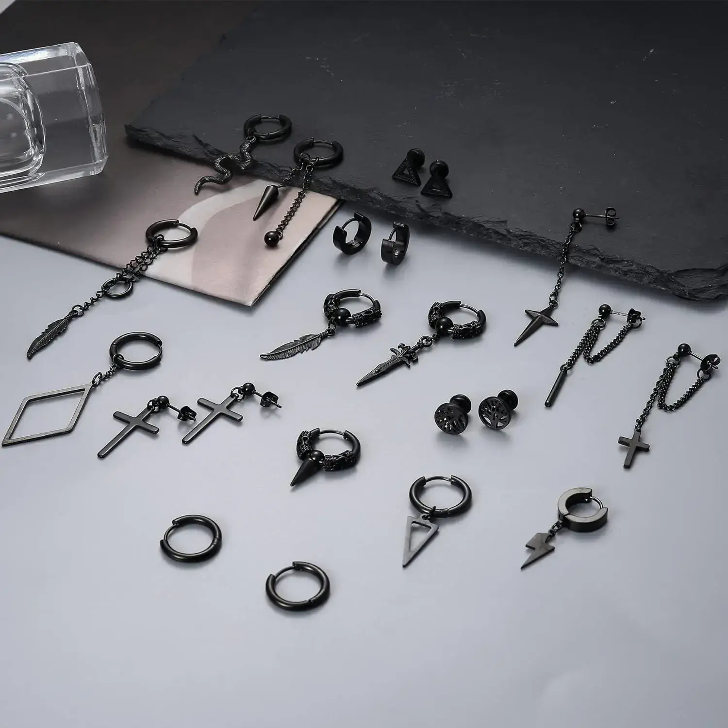 22 Count Men’s Earrings: You will receive a set of 22 different designs of earrings, including hoop earrings, stud earrings, hoop dangle earrings and stud earrings with chain, integrate many classic and popular elements: snake, pyramid, feather, cone, chain, sword, lightning and soon. Earrings adopt front and rear puncture structure, very punk, show your personality and style perfectly. It is a trendy accessory you can’t miss. Trustworthy Material: Made of high-quality 316L stainless steel, anti-rust and anti-corrosion, with fine workmanship, exquisite appearance, smooth surface, not easy to break and damage, advanced electroplating color preservation technology keep long-term gloss and brightness, ensuring long-term use, suitable for women and men to wear, making you look more cool and very fashion. Earring Design: Our dangle earrings are unisex design, such as sword pendant, long bar pendant, snake pendant, long-chain pendant and more. Different styles symbolize elegance, faith, beauty, confidence, delicacy, loveliness. Wearing the stud and hoop dangle earrings showing off your charming personality. Chic and Charming: Stylish earrings for men meets your need for stylishness, lighting up your whole outfit and highlighting your charms and tastes. 22 count different dangle earrings for men offer enough choices, you can choose the appropriate one for decoration according to your dressing style, bringing you different decorative effects. Ideal Gift: The hoop dangle earrings set is suitable for most men and women, it is a perfect choice for dancer, rock music, punk, hip-hop lover, help to create your coolest look. If you are looking for a present for a man/women of punk, this stylish long chain dangle earring set deserves a place in your consideration.