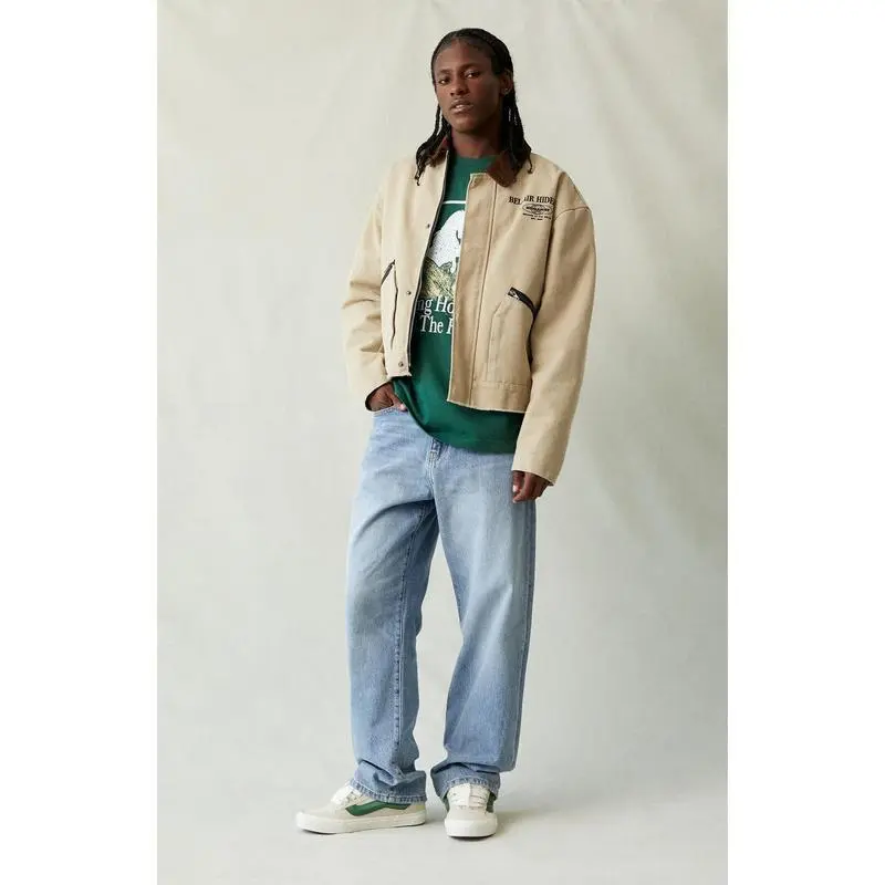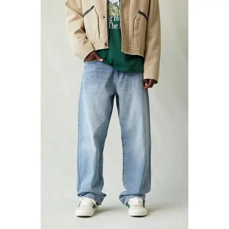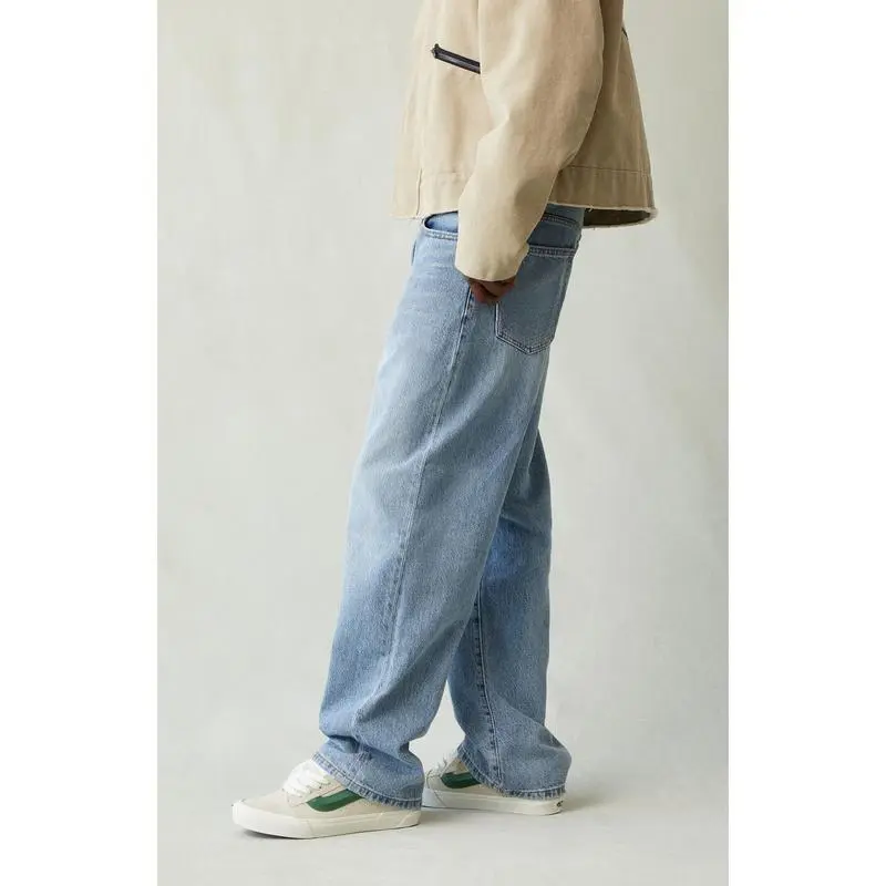 The Baggy Jeans Medium Indigo offer a classic relaxed fit with a wide leg and mid-rise design.Featuring a baggy fit from thigh through knee and an oversized wide leg opening, these jeans are completed with a zip fly closure, five-pocket body, and clean finish, making them a timeless choice for casual comfort and style. Model is wearing a size 32 Model Measurements: 6'0" Height, 28" Waist, 34" Chest, 32" Hips Learn more about eco items Men's Baggy Jeans Medium Indigo