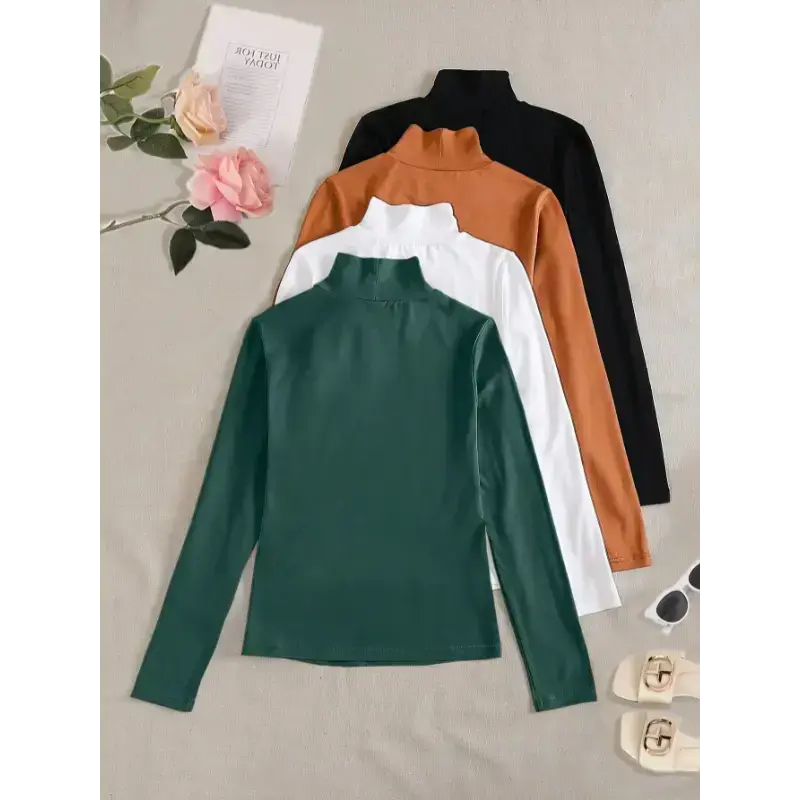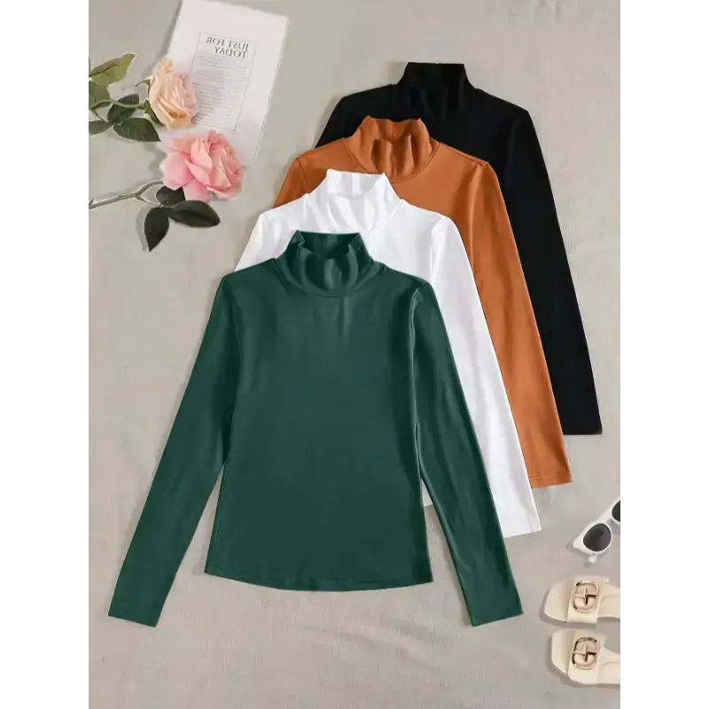 4 packs 4-Pack Women's Long Sleeve Turtleneck Tops, Casual Fall & Spring T-Shirts for Women