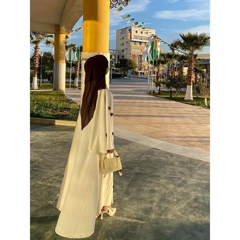 Elegantwhiteabayawithbellsleeves&butterflybowdetail-maxikaftandressforwomen,polyester,spring/fallwear,full-lengthrobestyle