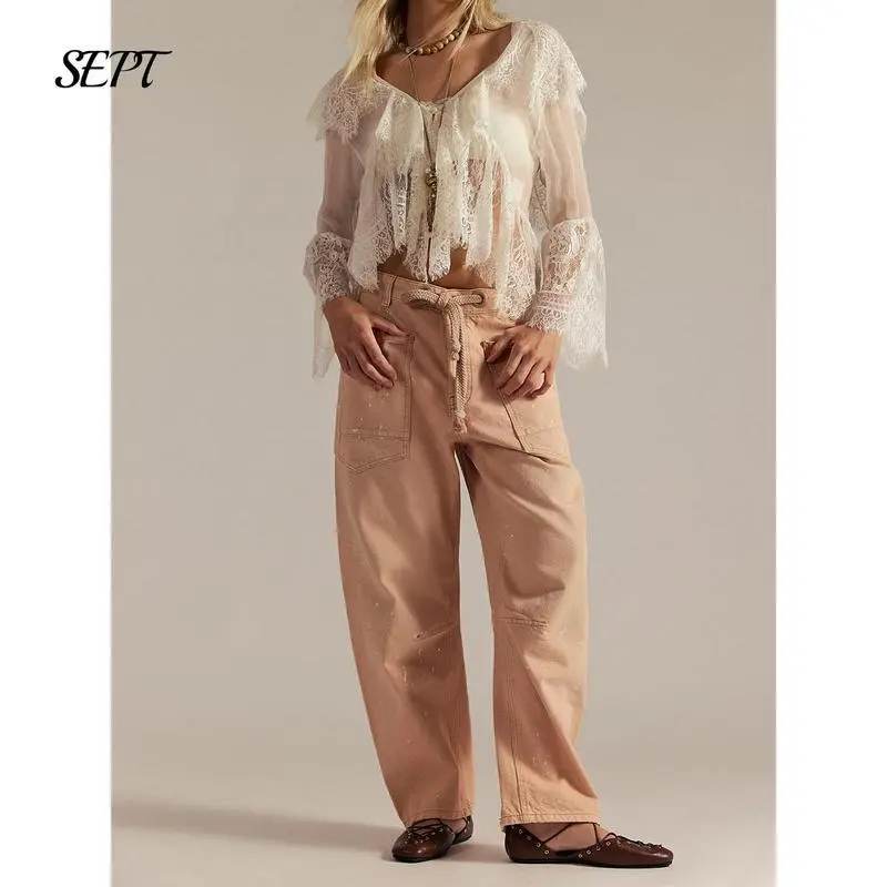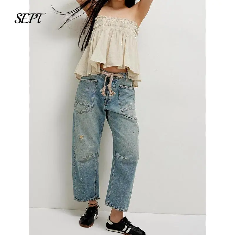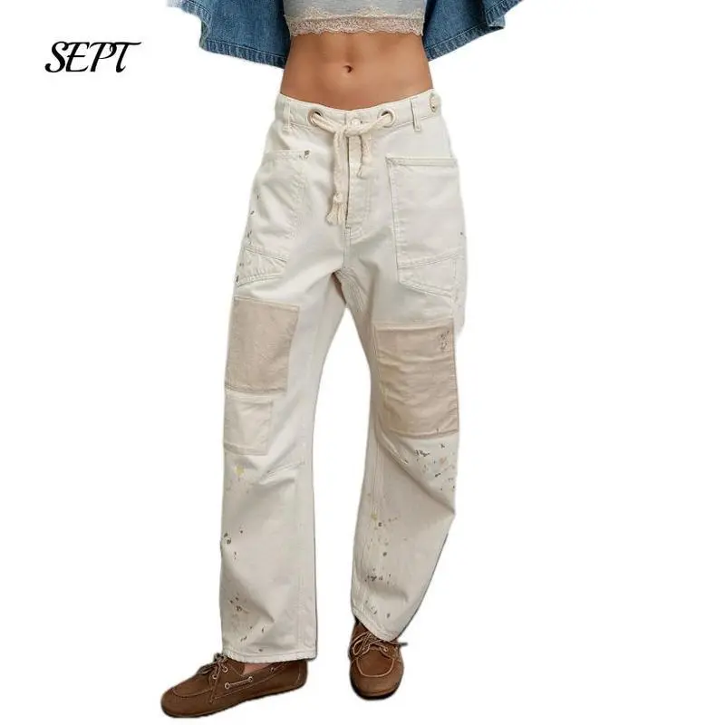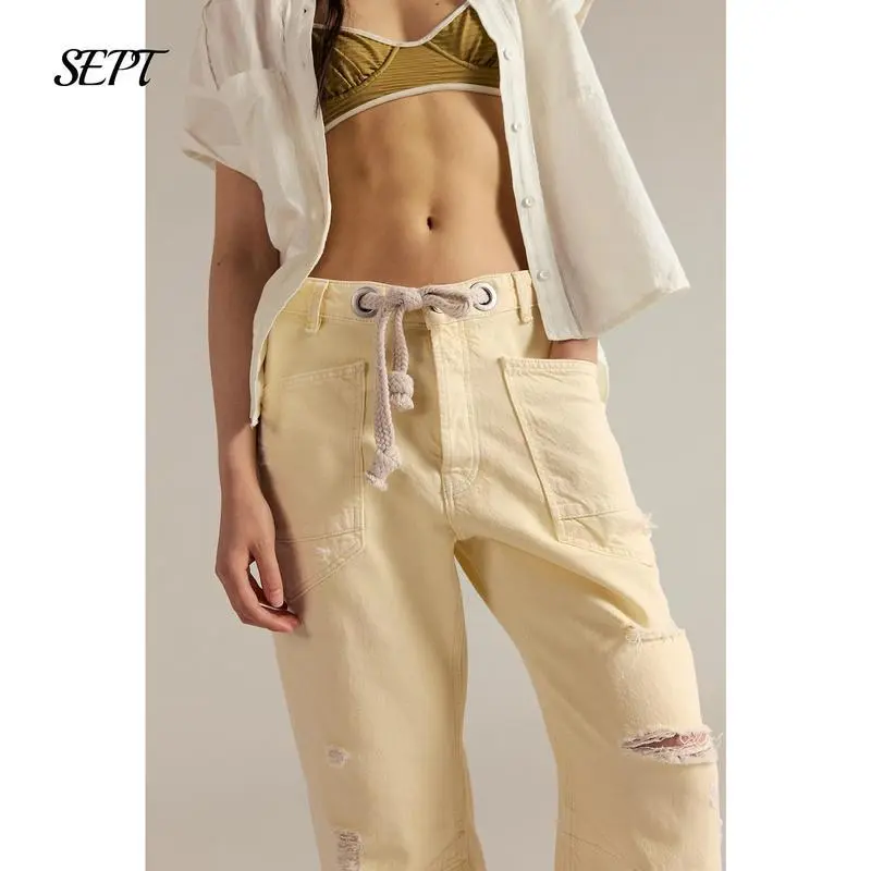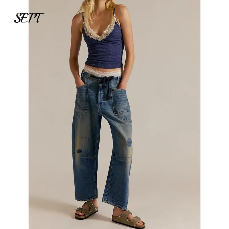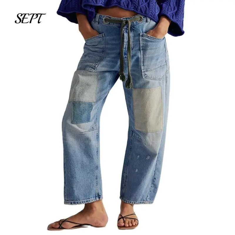 Package: A pair of drawstring jeans women; Suitable for most women wear, loose fit for a maximum comfort, super chic Note: