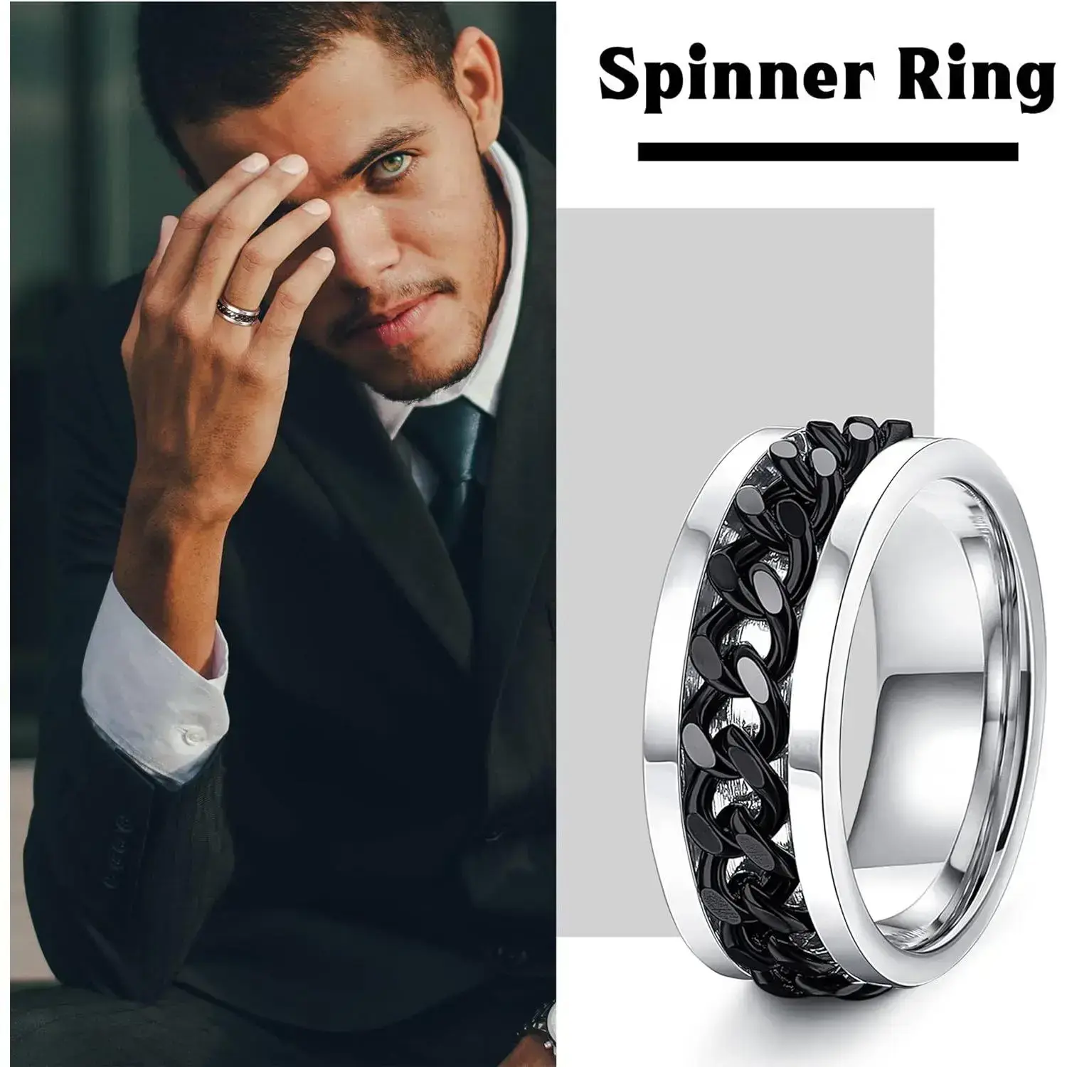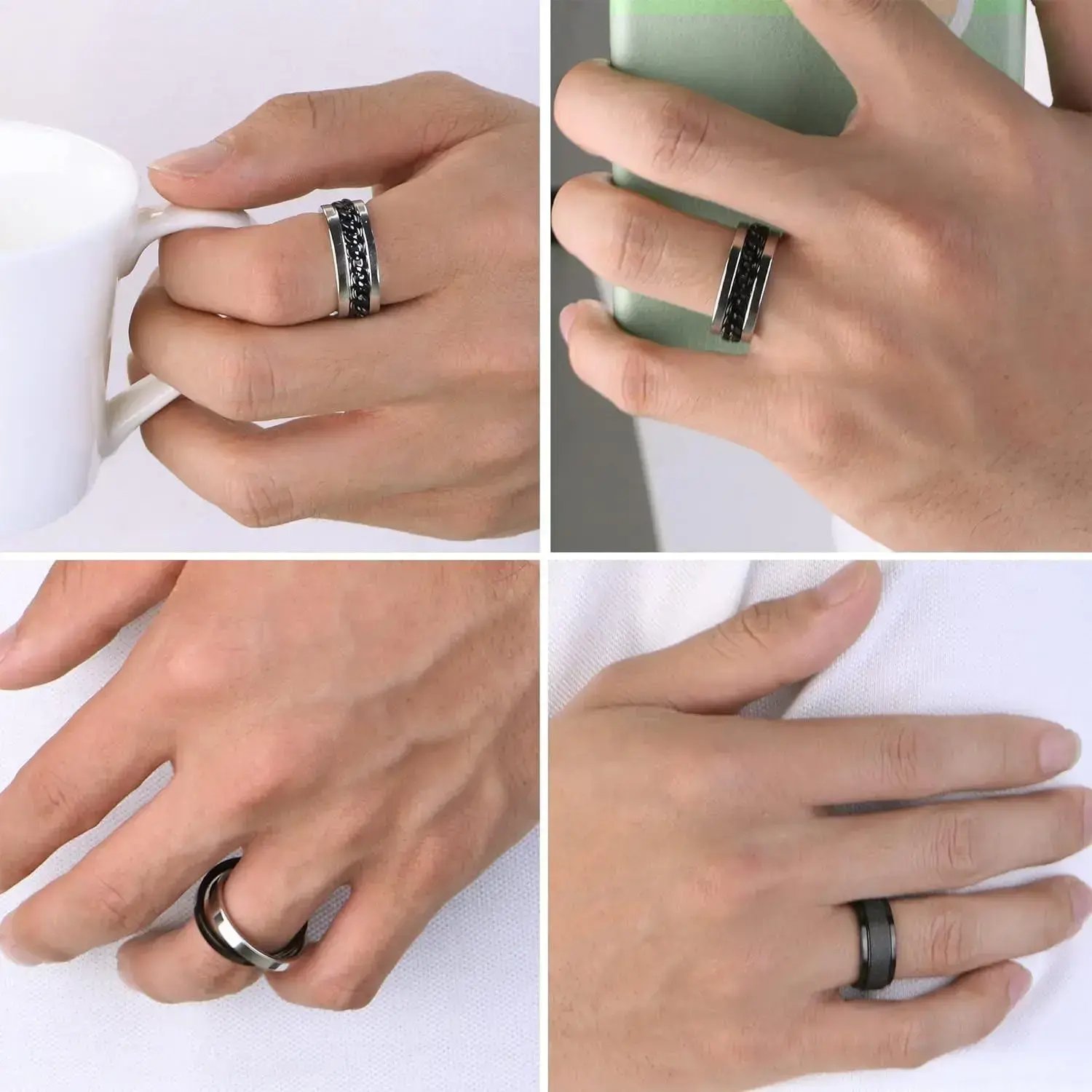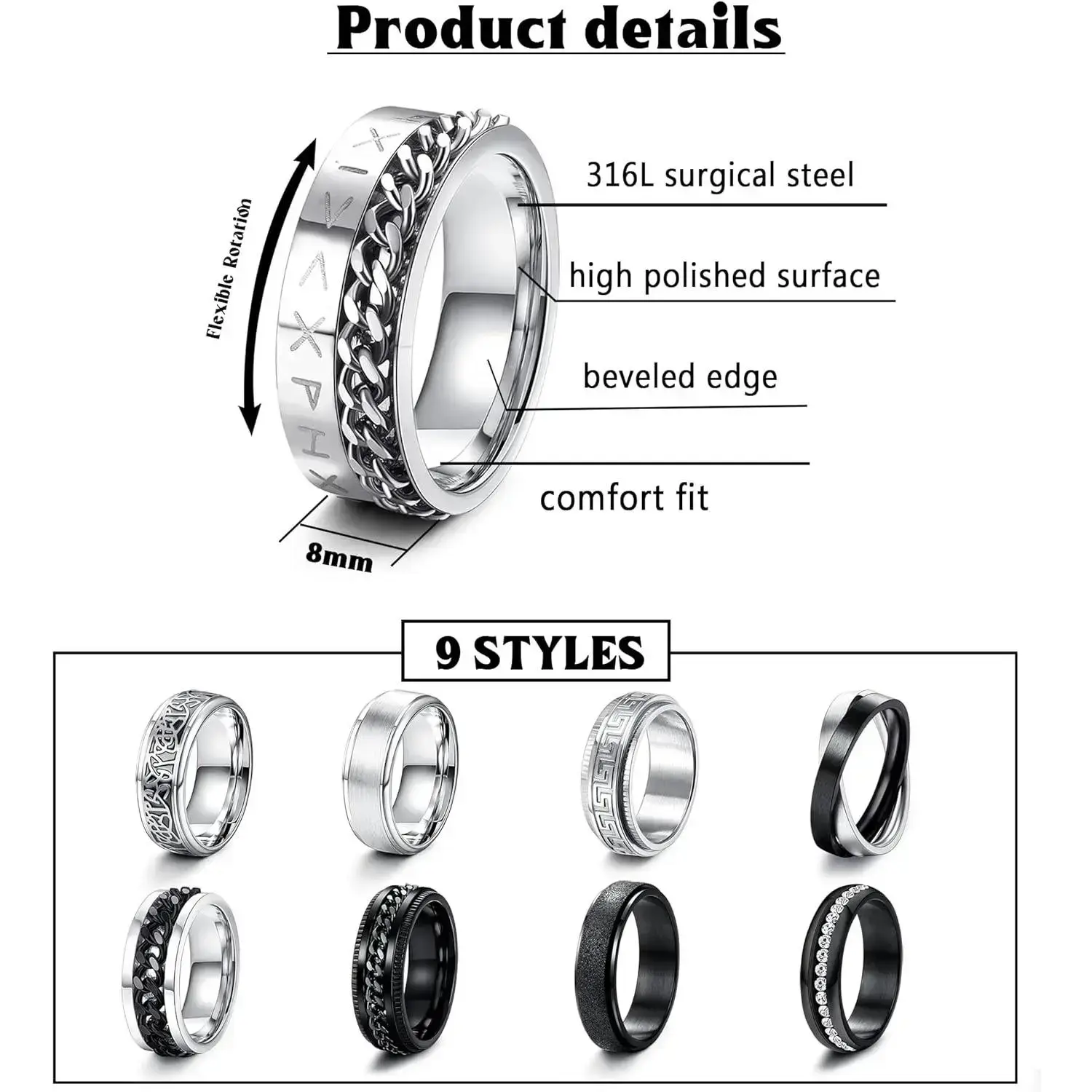 From the brand FLORIDECO 9 Pcs Stainless Steel Rings for Men Women Fidget Rings for Anxiety Cool Spinner Rings Beveled Edges Celtic Black Band Spinner Rings Set Size 7-13 Daily