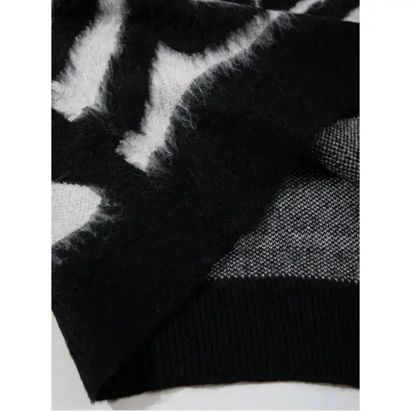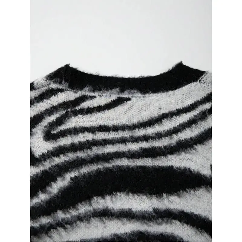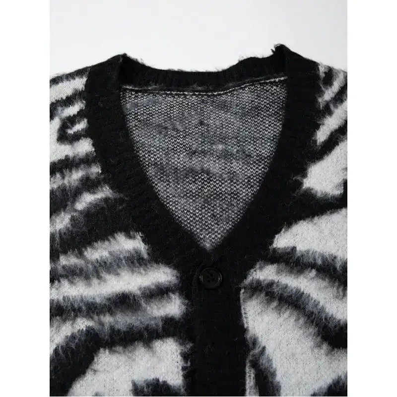 Casual Loose V-Neck Button Cardigan, Zebra Print, High Street Style Unisex Top, Suitable For Spring, Autumn & Winter