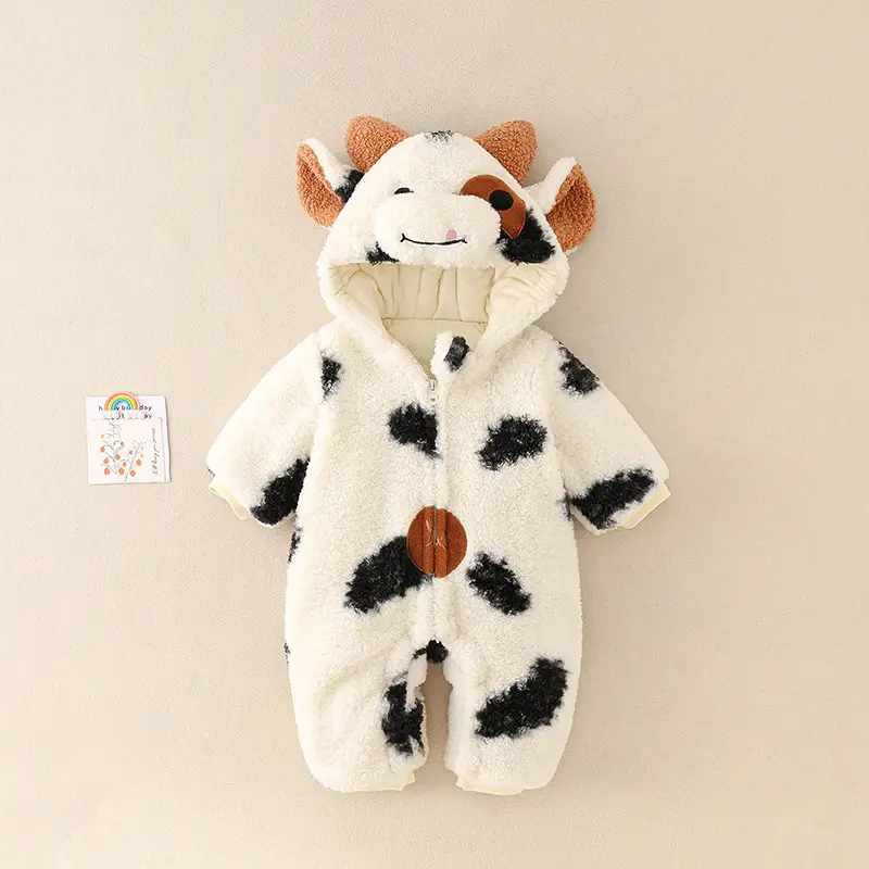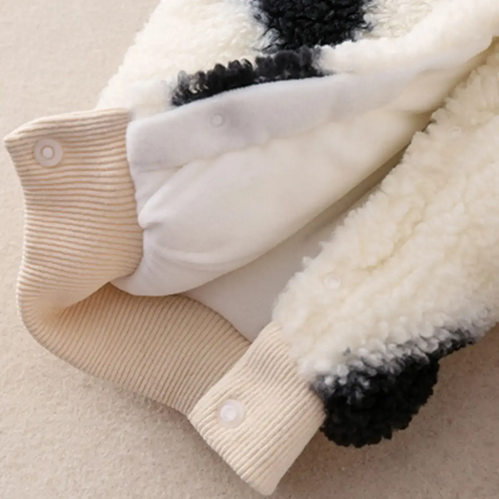 Baby Girls Boys Winter Plush Jumpsuit Long Sleeve Cartoon Print Zipper Hooded Romper