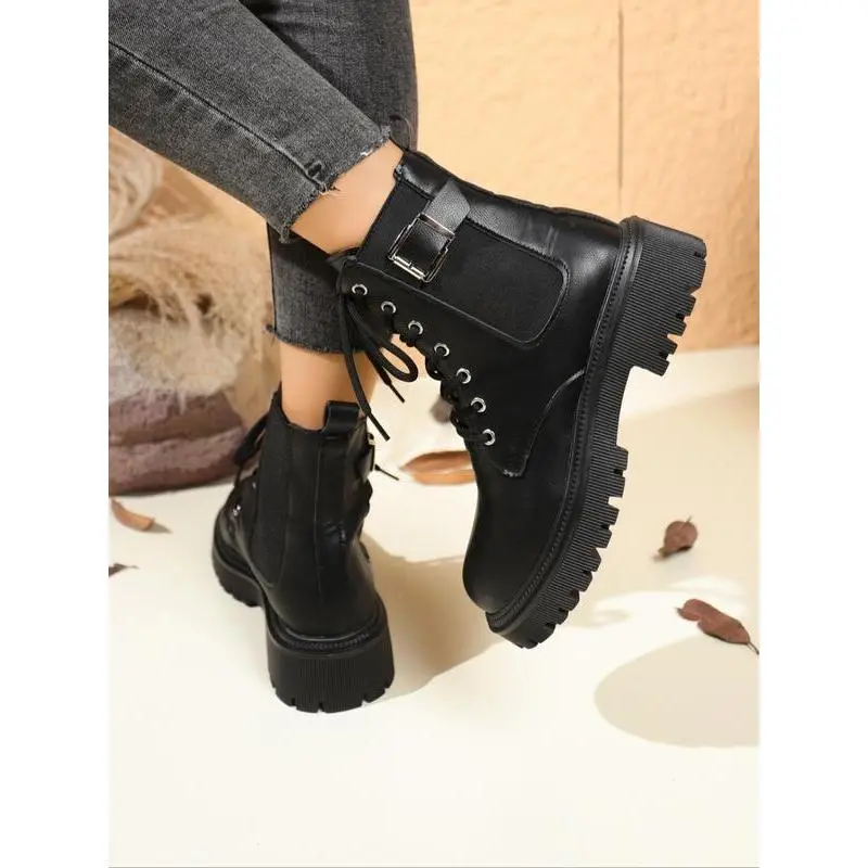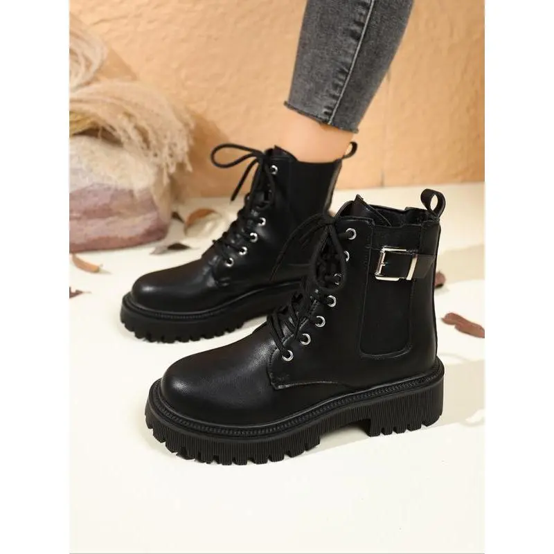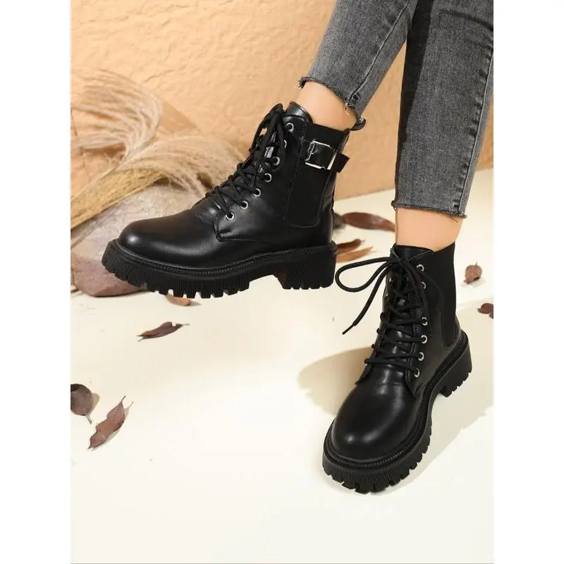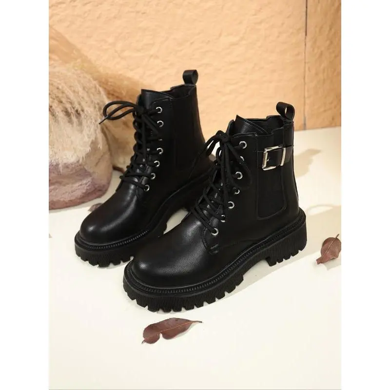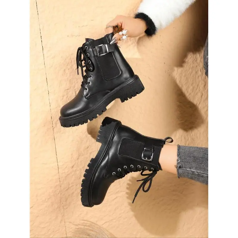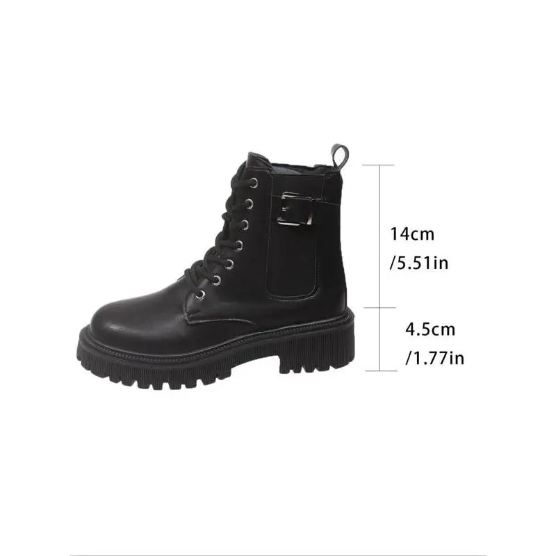 Fashionable and durable platform boots for daily wear, perfect for casual outfits. Featuring laces and metal buckles, they have breathable uppers suitable for street style and everyday commuting. They also offer anti-slip and wear-resistant properties.