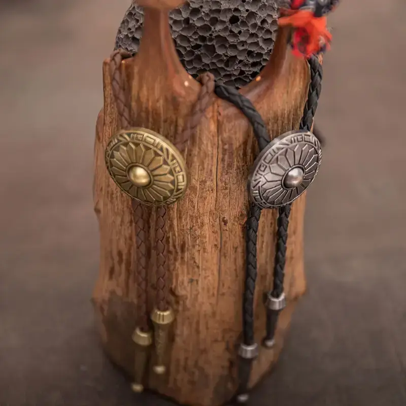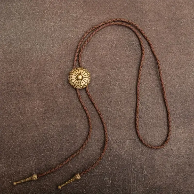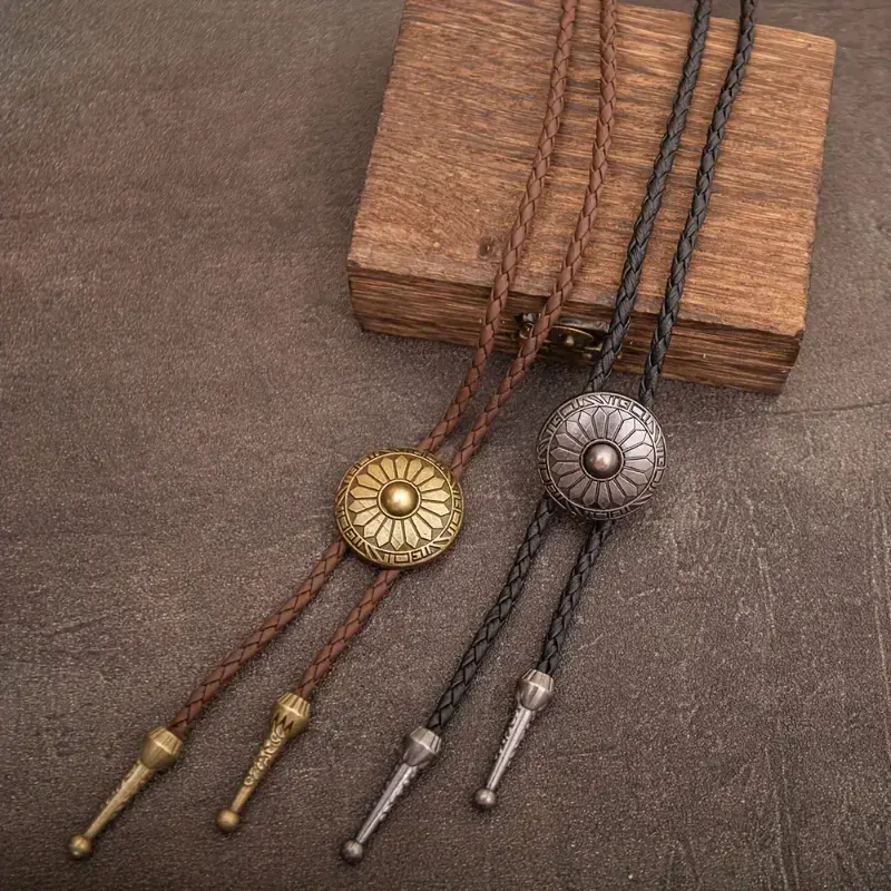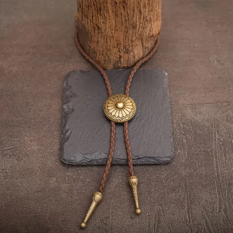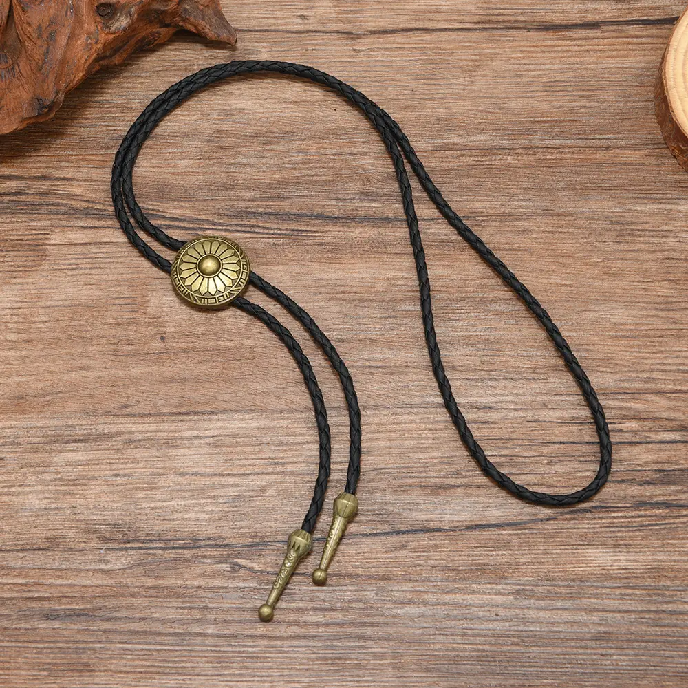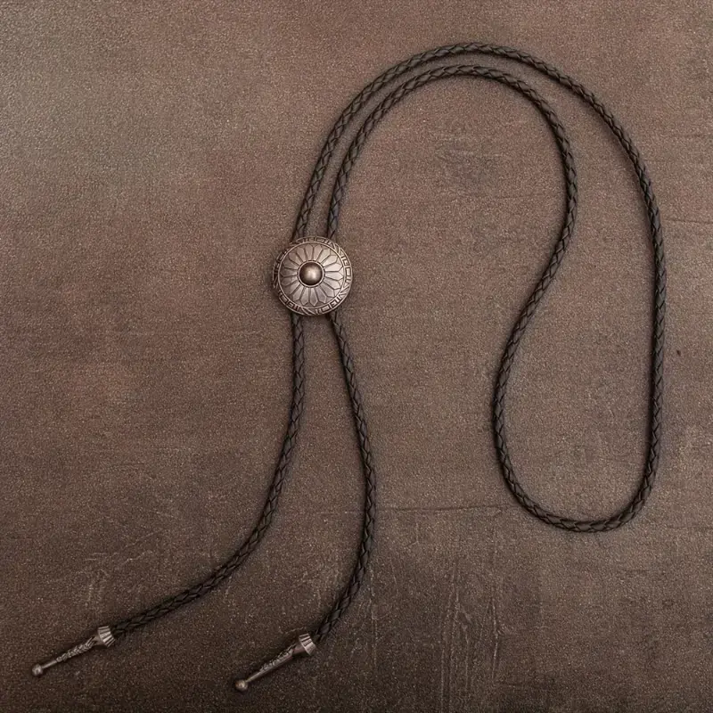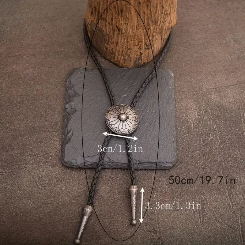 1pc Retro Bolo Tie Western Cowboy Style Necklace with Round Pattern Long Chain