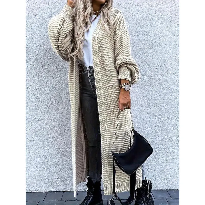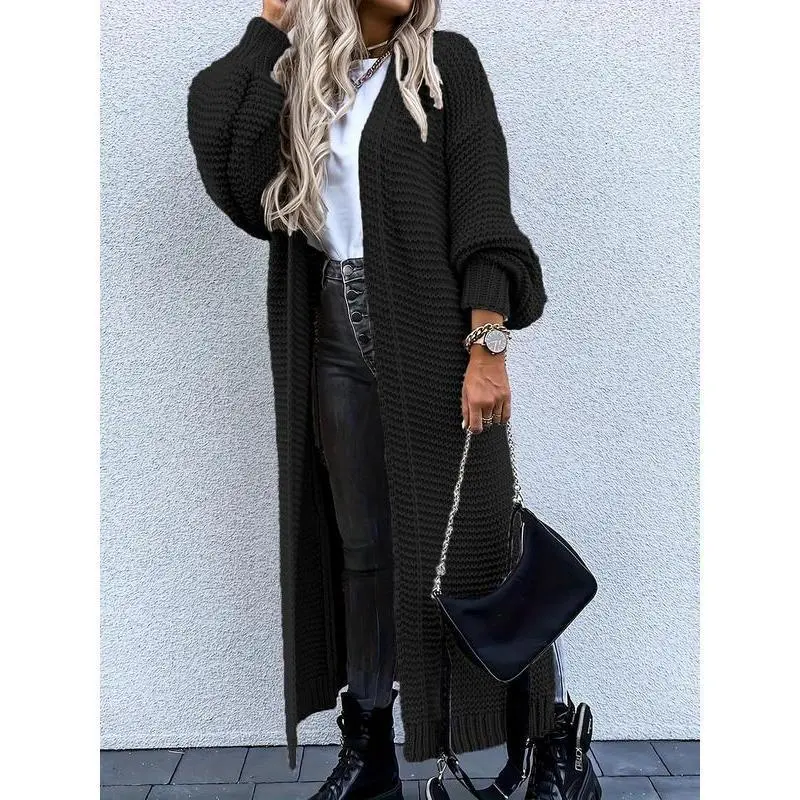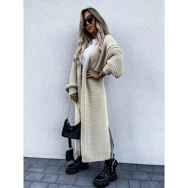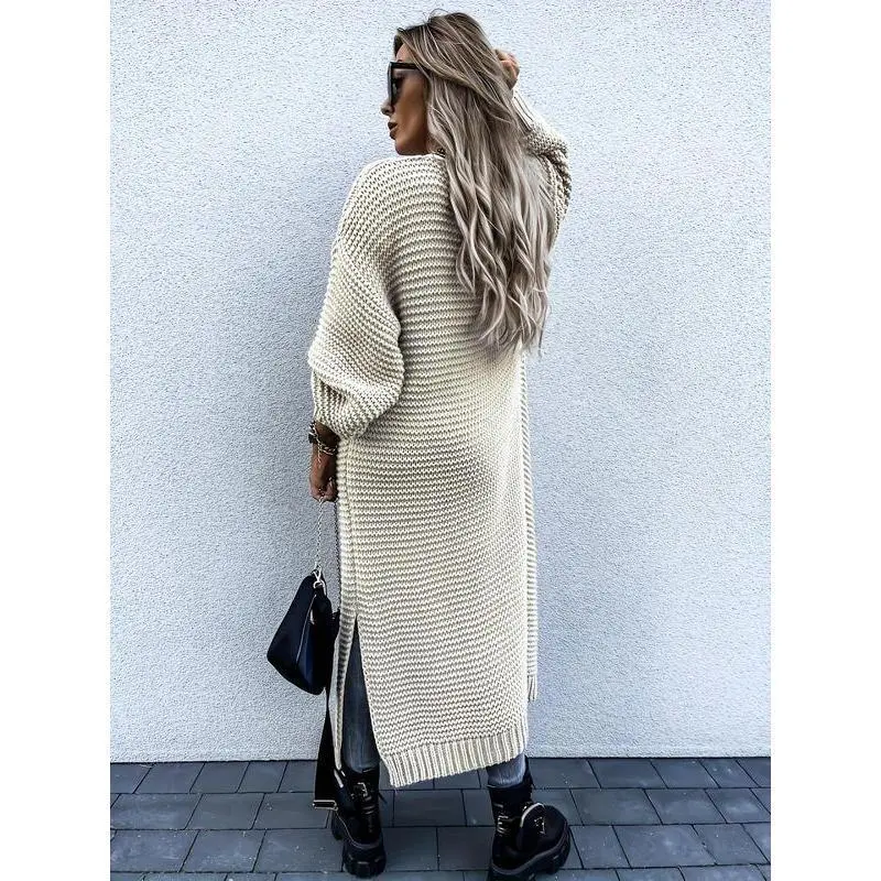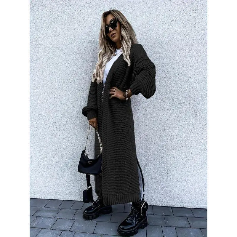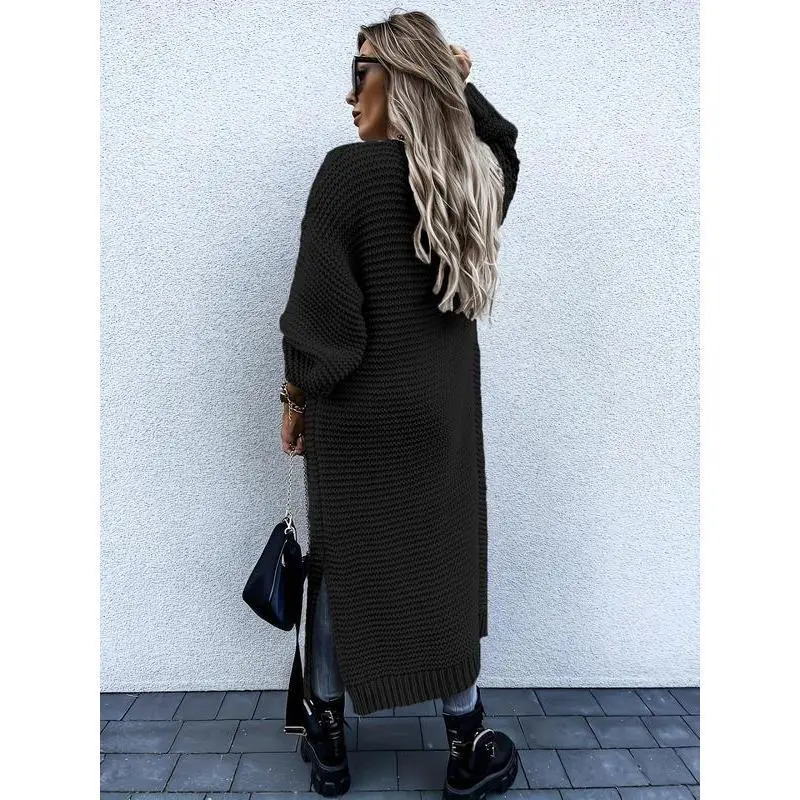 Women's Solid Color Split Hem Drop Shoulder Cardigan, Casual Long Sleeve Open Front Knitwear for Fall & Winter, Women's Oversize Knit Clothing for Daily Wear Womenswear Tops