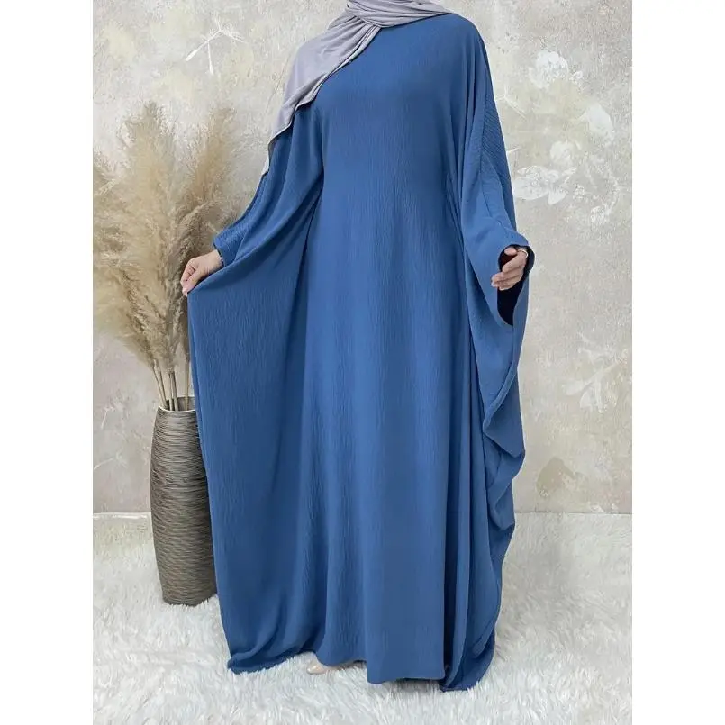 2024RamadanSolidSimpleLooseModestDress,ElegantBatwingSleeveMaxiLengthDress,Women'sClothingdandyBlueGoldAbayaModesty