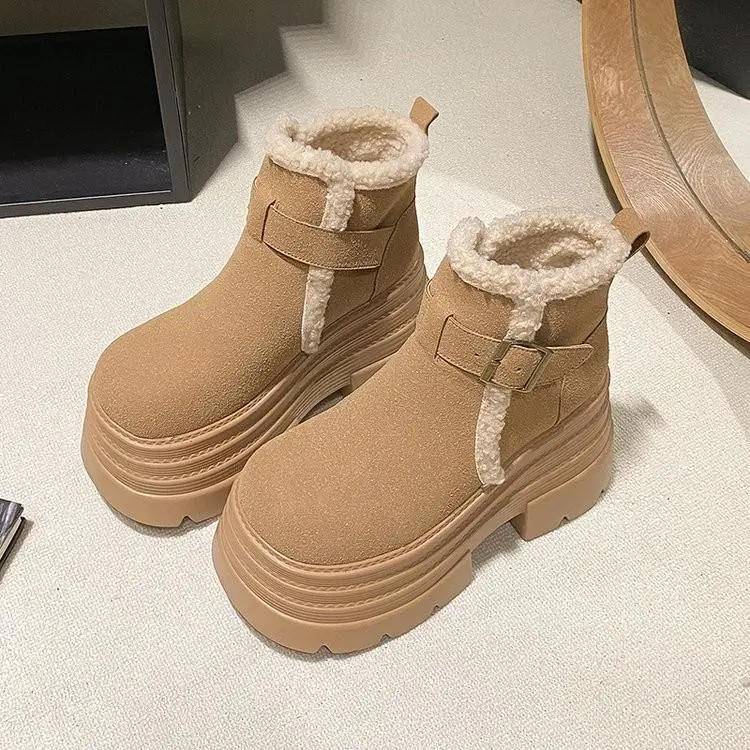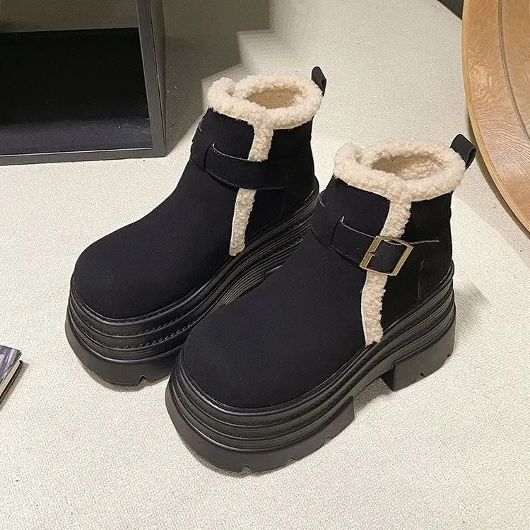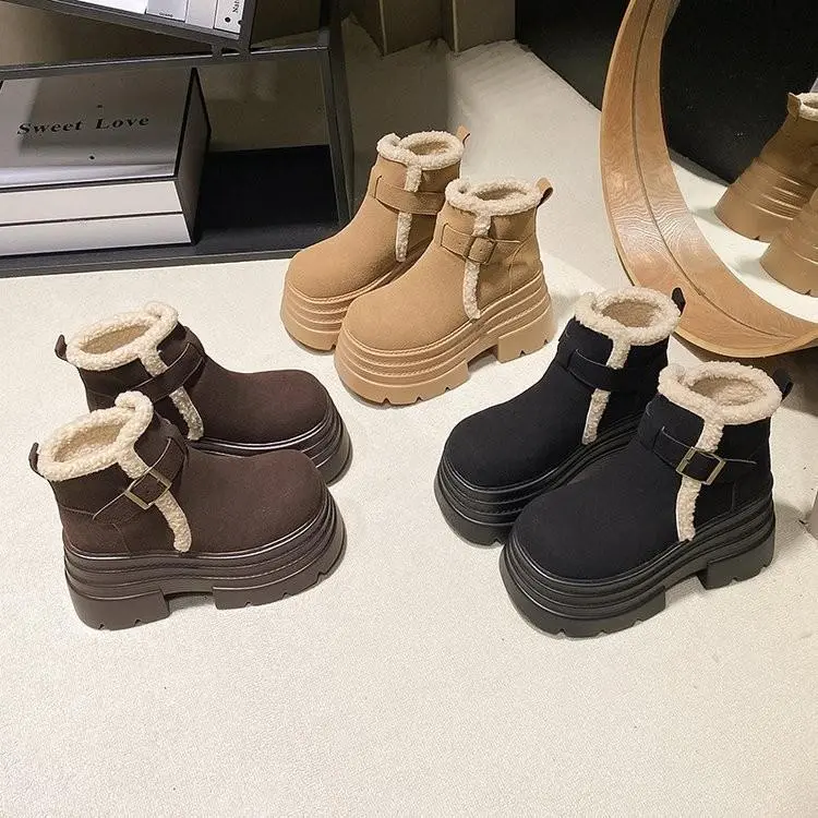 Autumn New Woman Platform High Heel Sneakers Shoes Winter Warm Fur High Top Sneakers Snow Boots On Platform High Heel