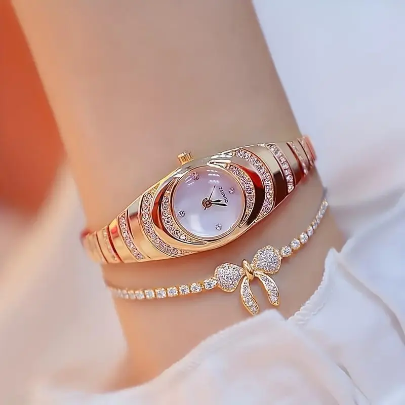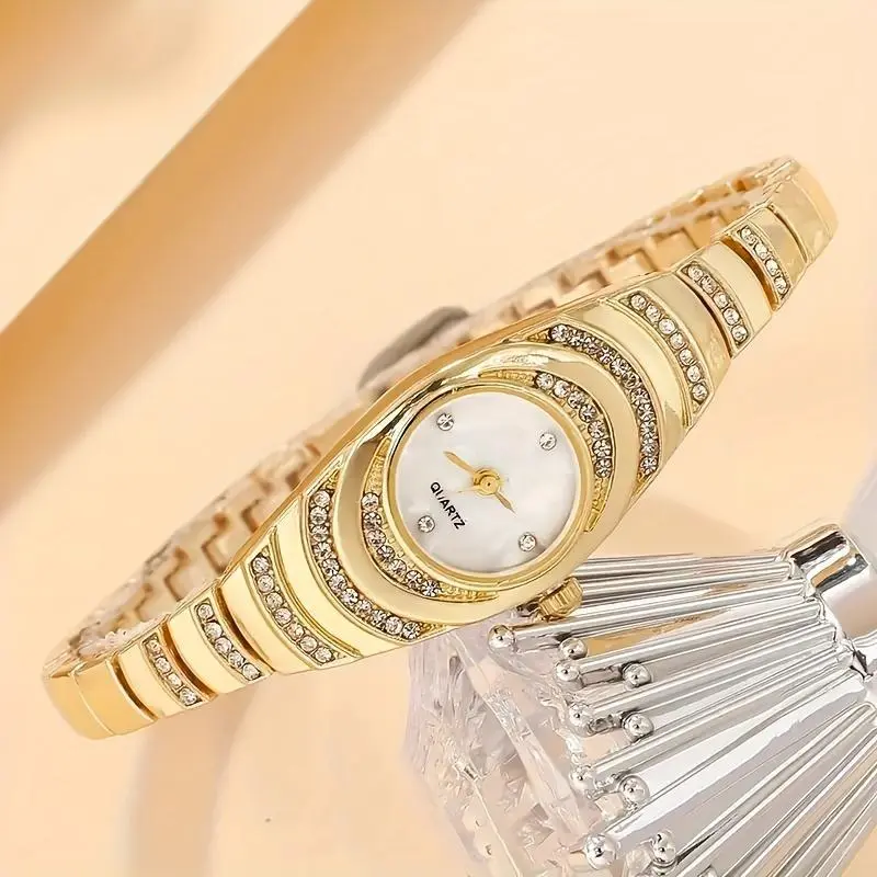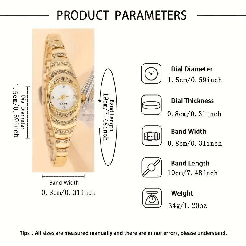 2Pieces/SetFashionableElegantPointerStyleWomen'sQuartzWatchSet,ExquisiteShinyWatchSet,1Watch+1Bracelet,SuitableforDailyUseorGiftGiving