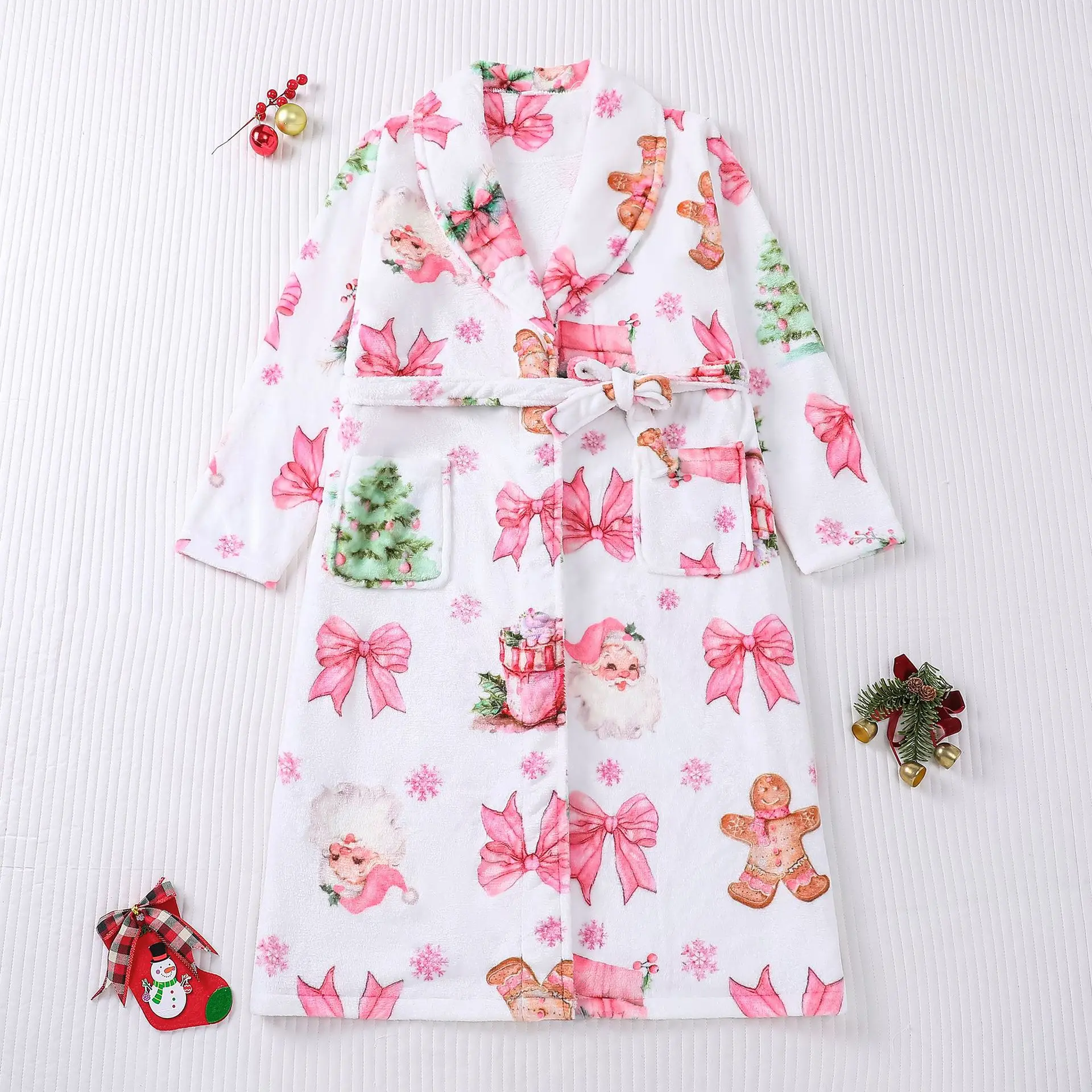 ?? Festive Christmas Robe ? This robe features a candy snowman print, perfect for Christmas. Ideal for autumn and winter, it offers a cozy, festive vibe. It's a pajama dress, combining comfort and style. A delightful choice for those who love a whimsical touch during the holidays. Embrace the season in this charming piece. Customizable Fit & Comfort Practical & Stylish Whether dressing up for Christmas or relaxing at home, this robe is your go-to piece. The drawstring pocket adds functionality, making it more than just a robe. It's a perfect blend of style and practicality, ensuring you look and feel great during the holidays.