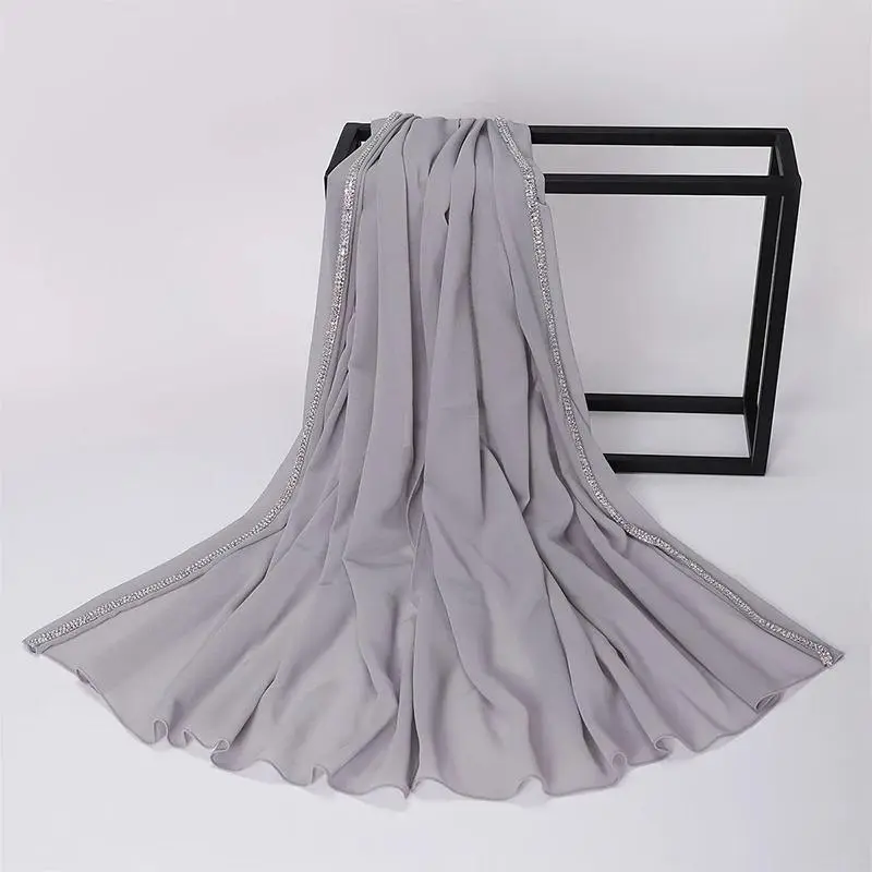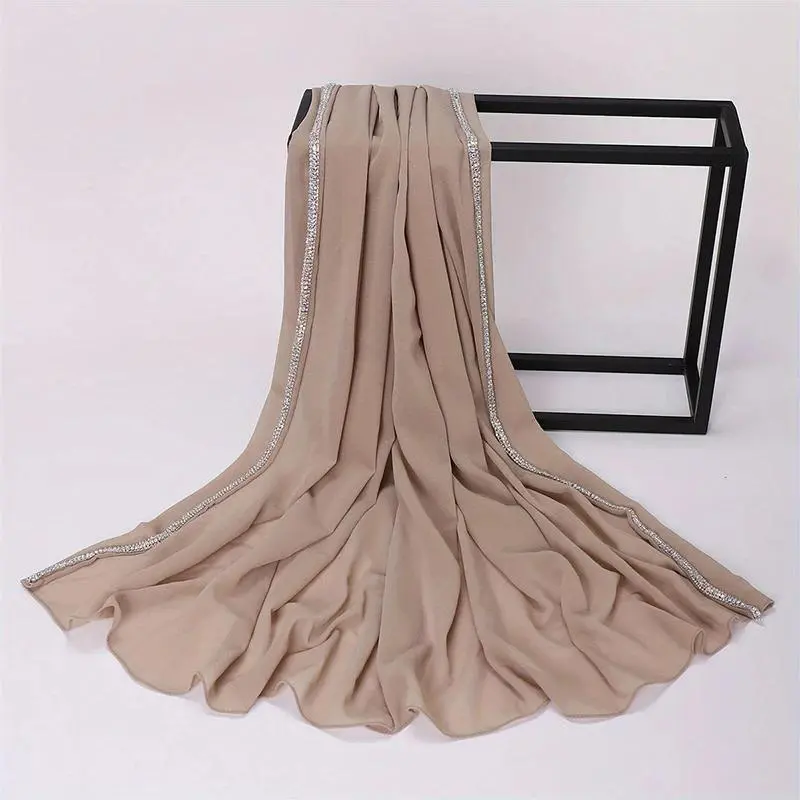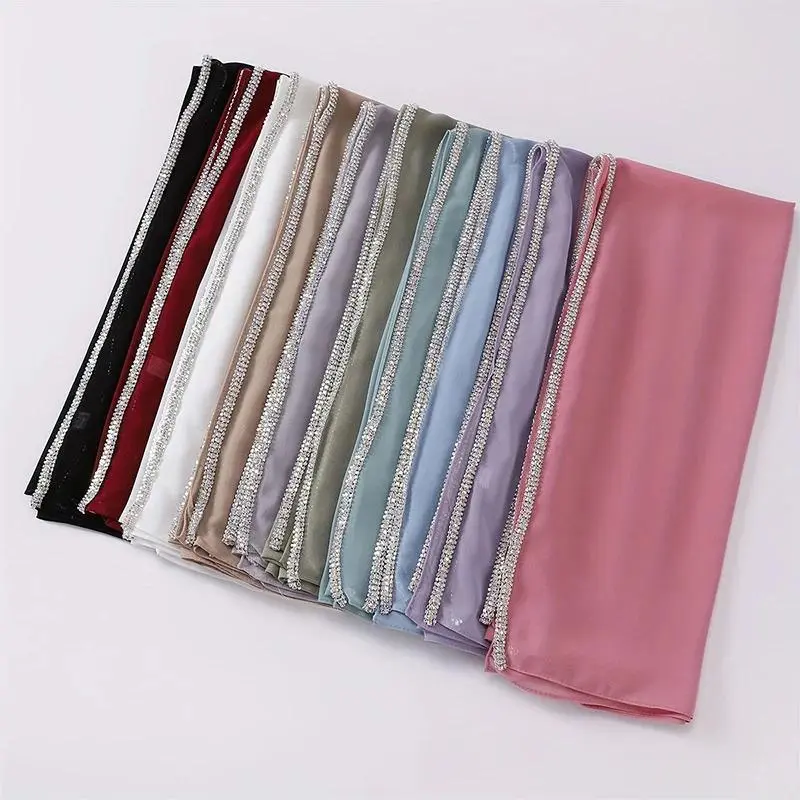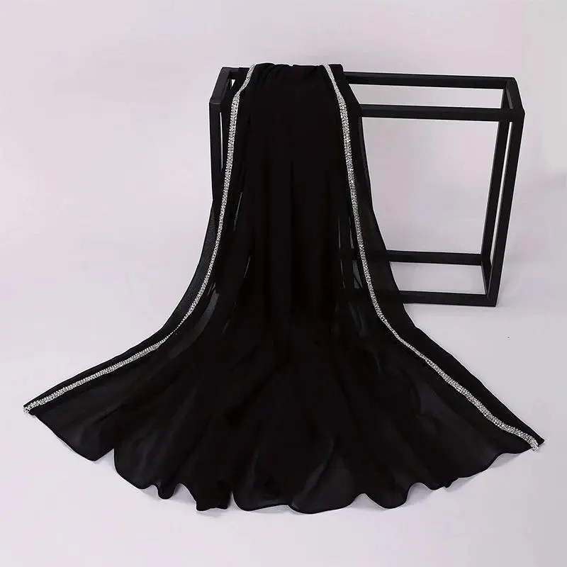 lainPearlBubbleChiffonDiamondRhinestoneShawlScarfHighQualityShimmerBeadsHeadbandWrapFoulardMuslimHijab