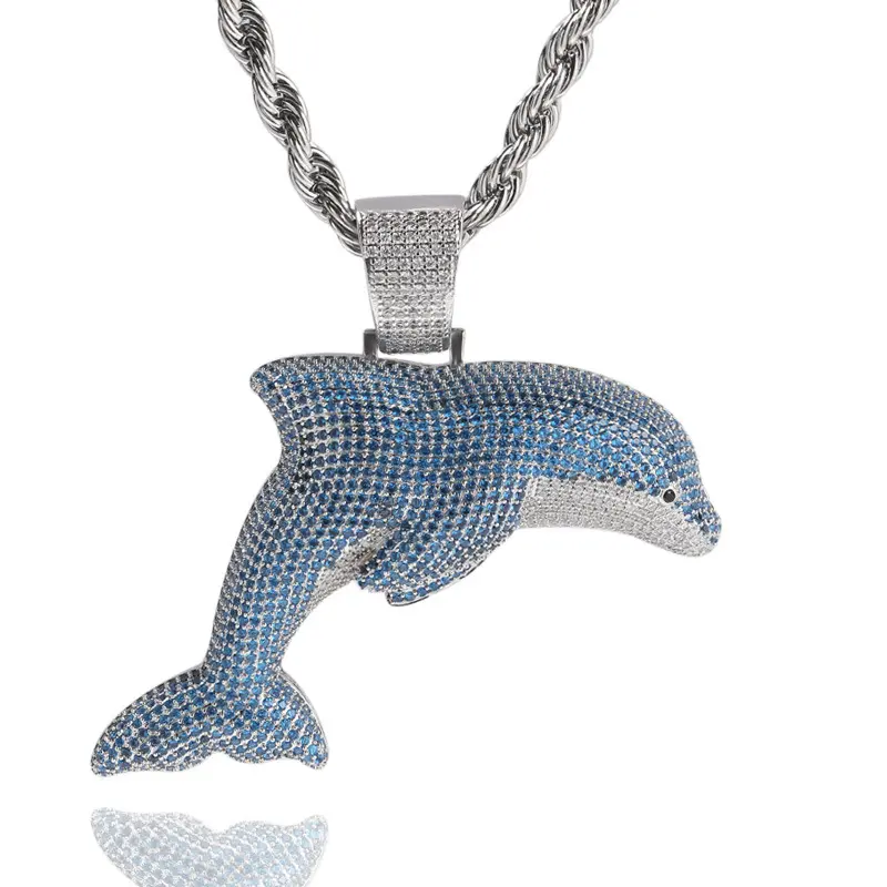 Extra Large Dolphins Chain Cubic Zirconia Pendant Cuban Chain Cute Animals Necklace Hip Hop Jewelry Men Women Decor Daily Wear Hip Hop