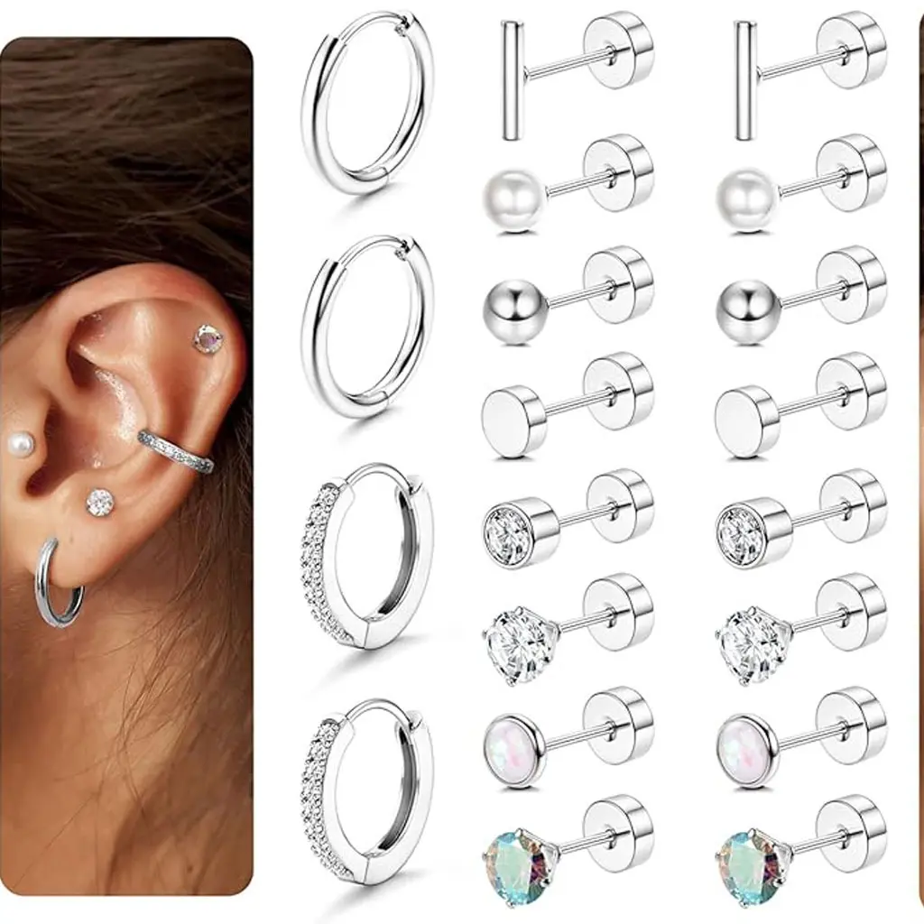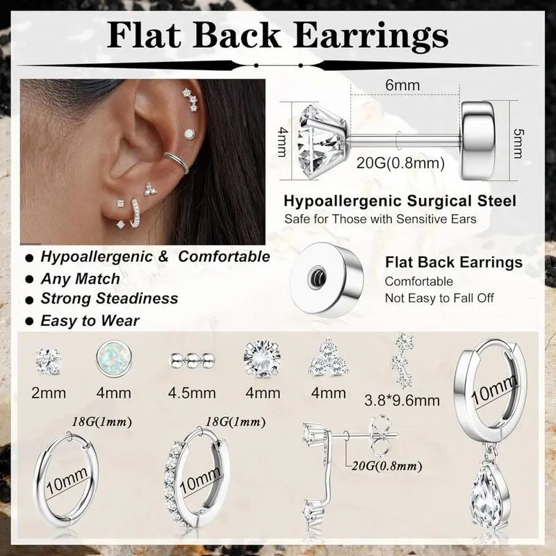 Hypoallergenic Flat Back Earrings Gold Cartil Earring Sets for Multiple Piercing 20G Surgical Stainless Steel Earrings for Women Trendy Earring Stacks Small Hoop Flatback Stud Earrings