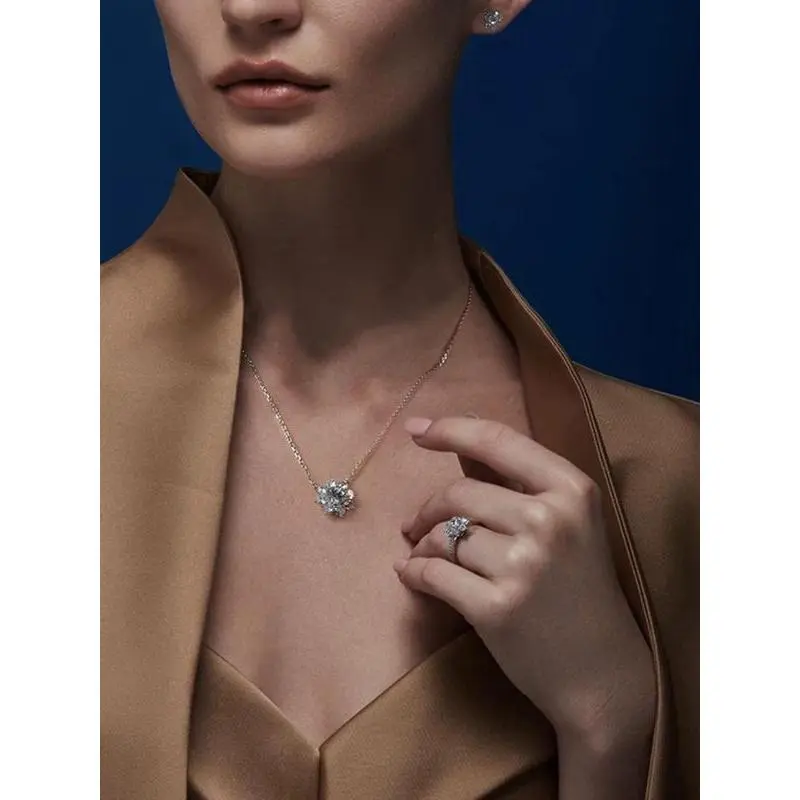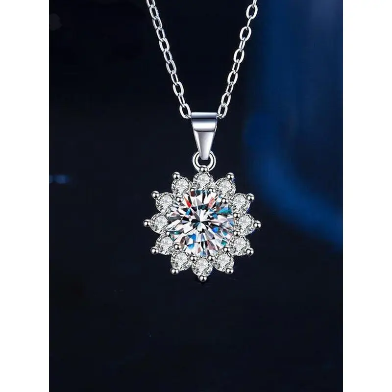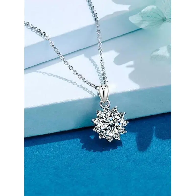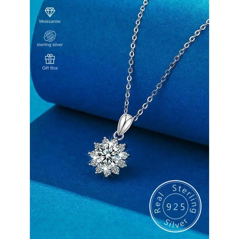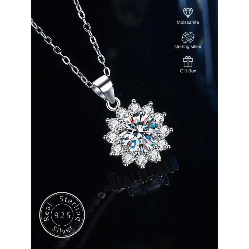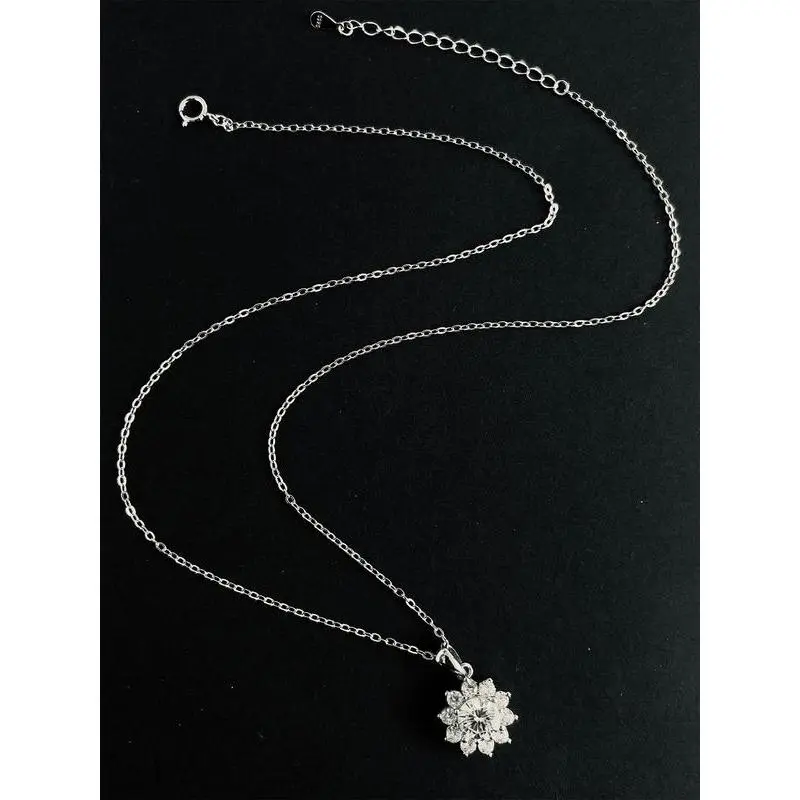 S925 Sterling Silver Synthetic Moissanite Decor Flower Pendant Necklace for Women, Elegant Jewelry for Party, Daily Decor, Trendy All-match & Exquisite Jewelry for Birthday Gift