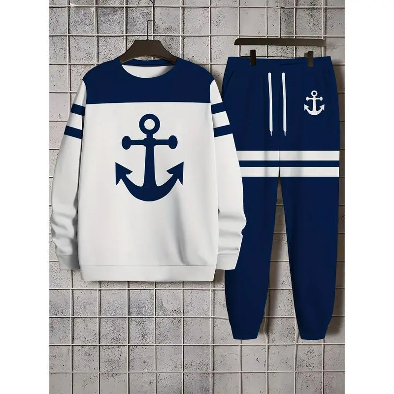 Men's Creative Anchor Print Set - Comfortable Casual Polyester Blend, Machine Washable