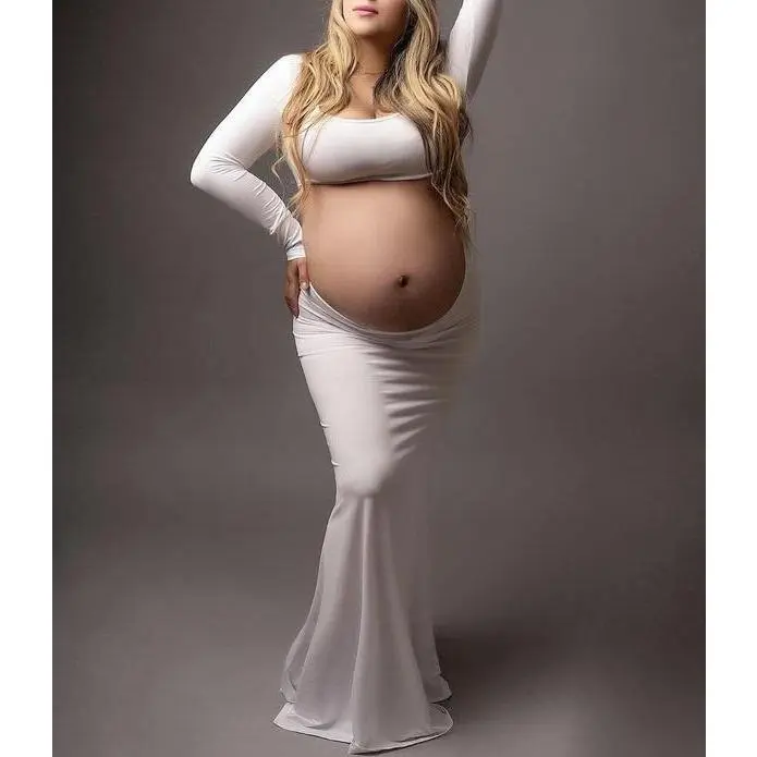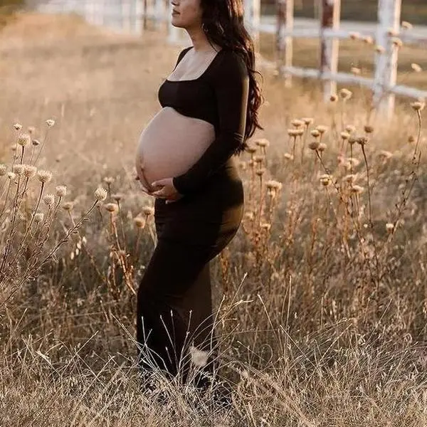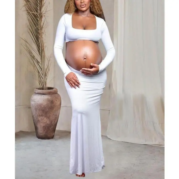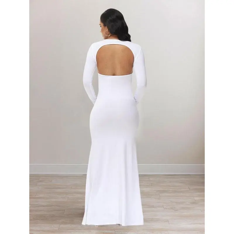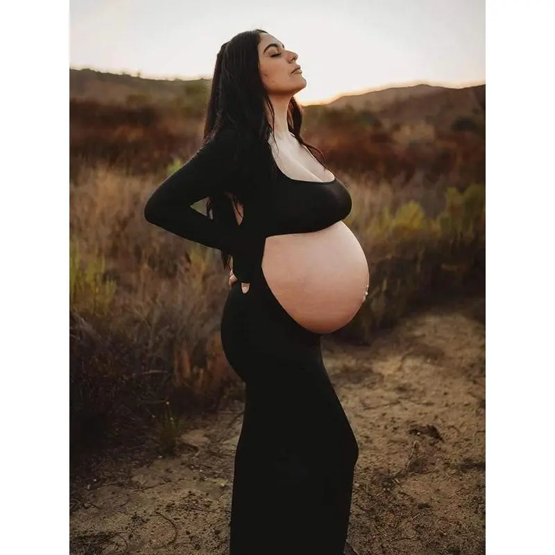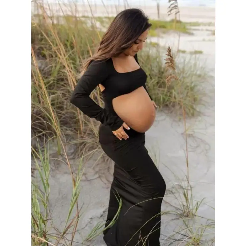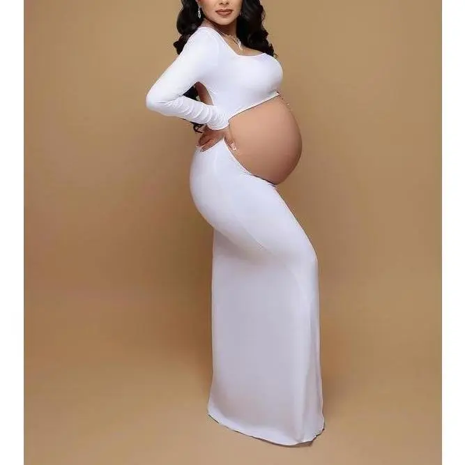 MaternitySolidCutOutBacklessDress-LongSleeveSquareNeck,MaxiDressforBabyShowerParty,FallPhotoDress,MaternityClothes-Pregnancy