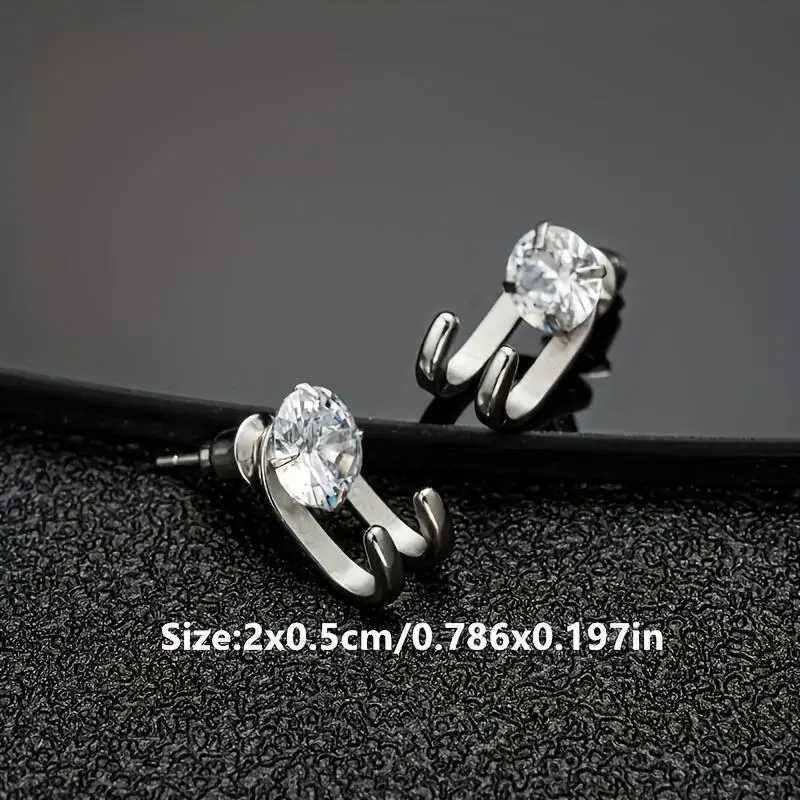 2PiecesMen'sTitaniumSteelEarrings,SyntheticCubicZirconia,Hip-HopFashionJewelry,StainlessSteelEarStuds,SuitableforDailyWearandPartyAccessoriesvogue