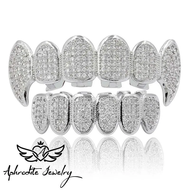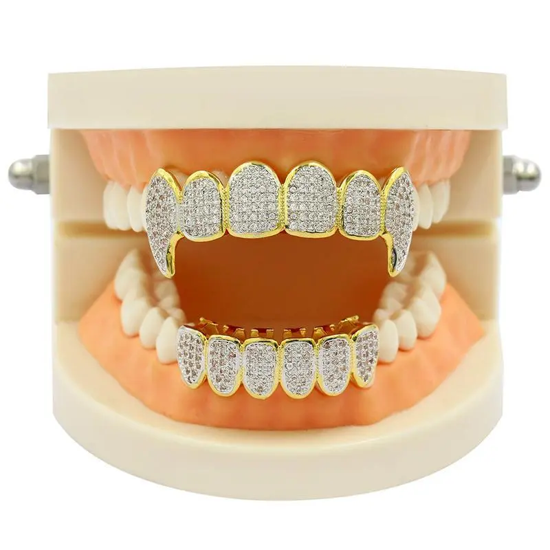 【Fashion casual】Hip hop braces jewelry micro-inset zircon braces Demon fangs