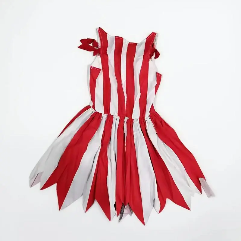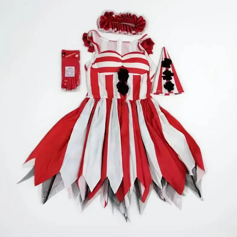 HalloweenHorrorClownCostumeSetwithStripedPointedHat,RedGloves,andRuffledCollar-RockHorrorClownCostumewithSuspenderSkirt,WhiteFacePaintingDesign,SuitableforCarnivals,ThemeParties,andRolePlay-HandWashableSeasonalCostume