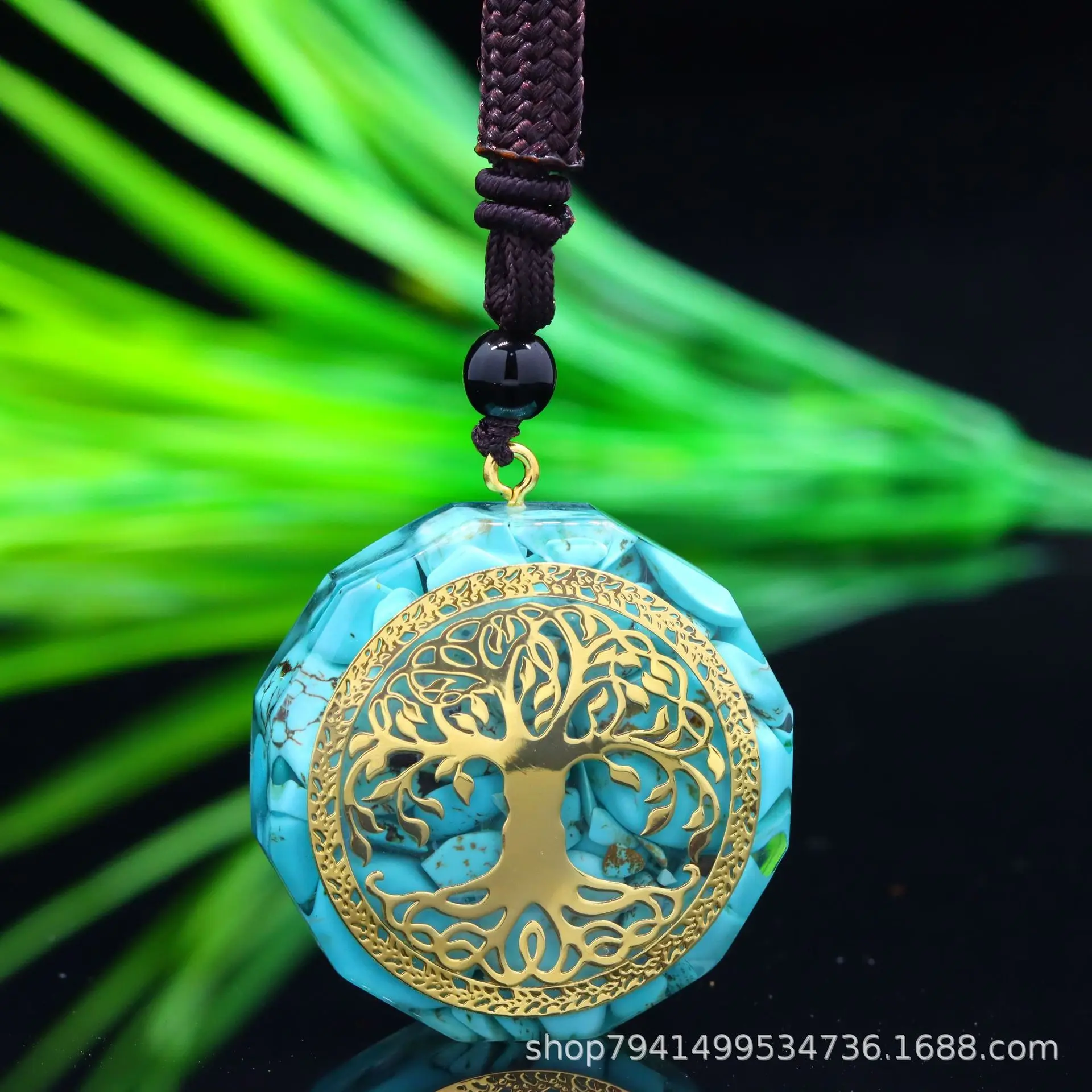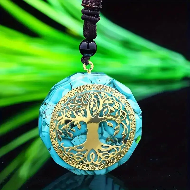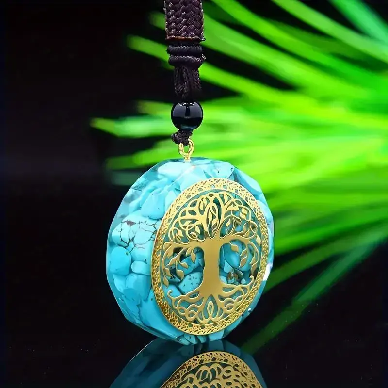 🌿 Tree Of Life Orgonite Pendant Necklace This Tree of Life Orgonite Pendant Necklace is a beautiful accessory for both women and men. Crafted with Turquoise Natural Stone and Resin, it serves as a unique and stylish jewelry amulet. The necklace features a symbolic Tree of Life design, representing growth, strength, and connection to nature. 🌿 Turquoise Natural Stone Made with Turquoise stone, known for protection, healing properties, and bringing calmness to the wearer. The Turquoise stone enhances the necklace's appeal, making it a versatile piece for any outfit. 🌿 Resin Jewelry Amulet The resin material enhances the durability of the pendant while adding elegance. This Orgonite pendant necklace is perfect for adding positive energy to your collection or as a meaningful gift for someone special.