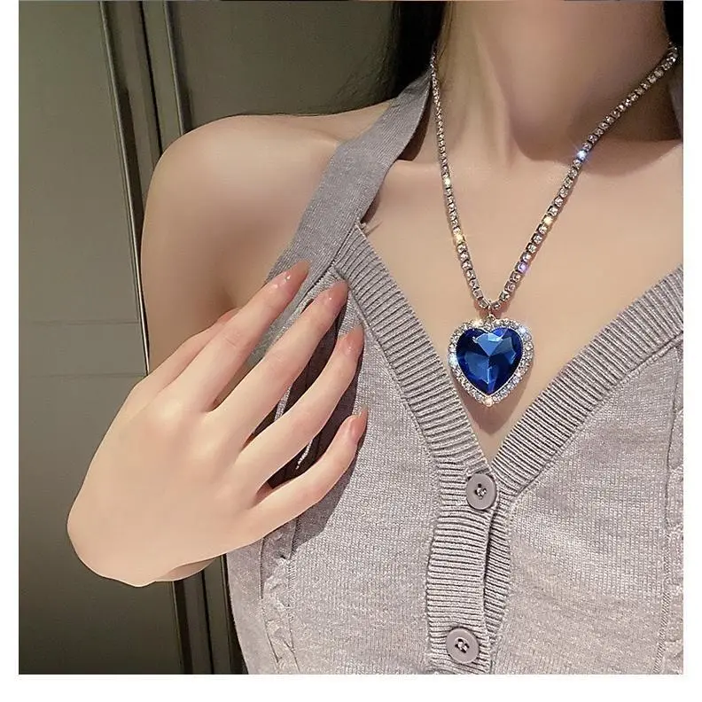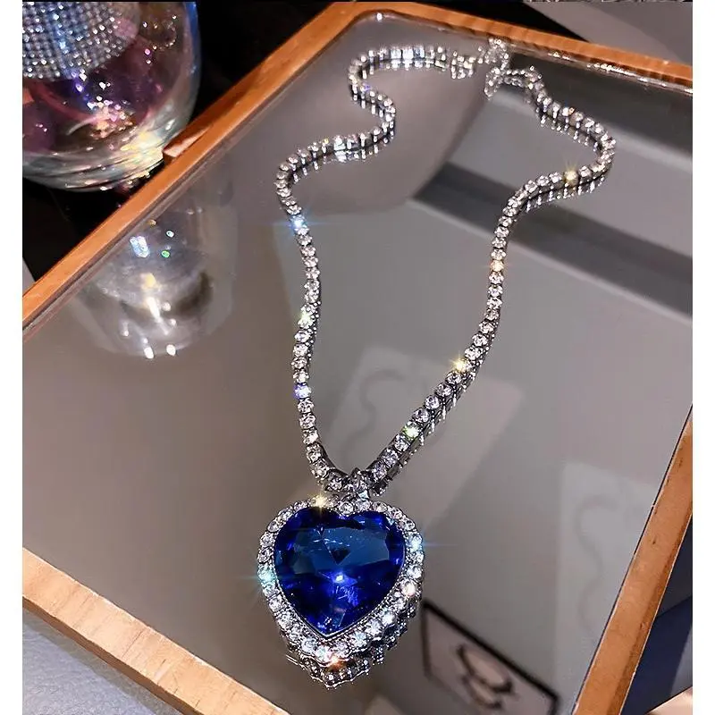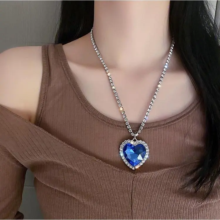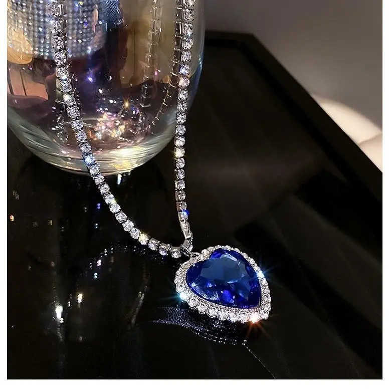 Indulge in timeless elegance with our Titanic Heart of the Ocean Necklace.This exquisite pendant features a captivating synthetic sapphire blue heart, reminiscent of the iconic movie treasure.Surrounded by dazzling rhinestone crystals and a shimmering rhinestone link chain, this necklace exudes luxury and sophistication. Crafted with meticulous attention to detail, our necklace is nickel and cadmium-free, ensuring comfortable wear for even the most sensitive skin. Embrace the romance and allure of the Heart of the Ocean.Add this enchanting piece to your jewelry collection today! Iconic Design: Captures the elegance of the Heart of the Ocean necklace from the Titanic. Dazzling Sapphire Blue Heart: Showcases a stunning synthetic sapphire that radiates timeless beauty. Rhinestone Embellishments: Enhanced with shimmering crystals, adding a touch of glamour. Nickel & Cadmium Free: Hypoallergenic materials for comfortable, worry-free wear. INFORMATION