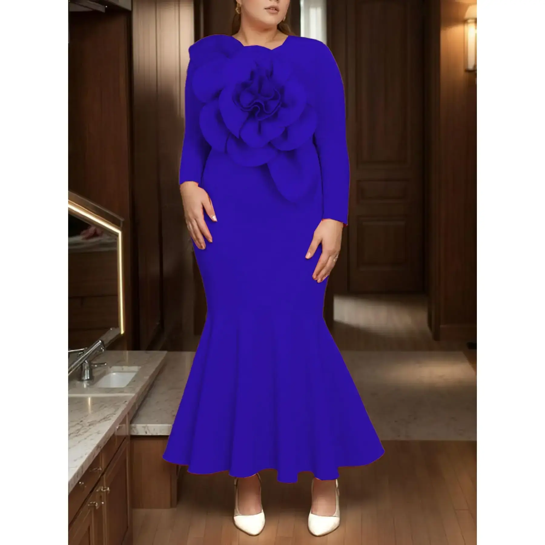 【Floral Pattern】: Features a detailed floral pattern that adds a unique element to the dress, enhancing its visual appeal. 【Slim-Fitting Cut】: The dress boasts a slim-fitting silhouette, designed to flatter the body and accentuate the waist beautifully. 【Long Sleeve Detail】: Equipped with long sleeves, this dress offers coverage while maintaining a sophisticated look for colder seasons. 【Natural Waist】: This dress has a natural waistline that creates a flattering shape, emphasizing the curves for an elegant silhouette. 【Mid-Length Style】: The mid-length design strikes a balance between formal and relaxed, making it suitable for various occasions such as weddings.