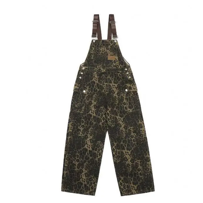 Women'S2025FashionableLeopardPrintDenimOverallsCasualLooseWideLegJumpsuitWithPockets