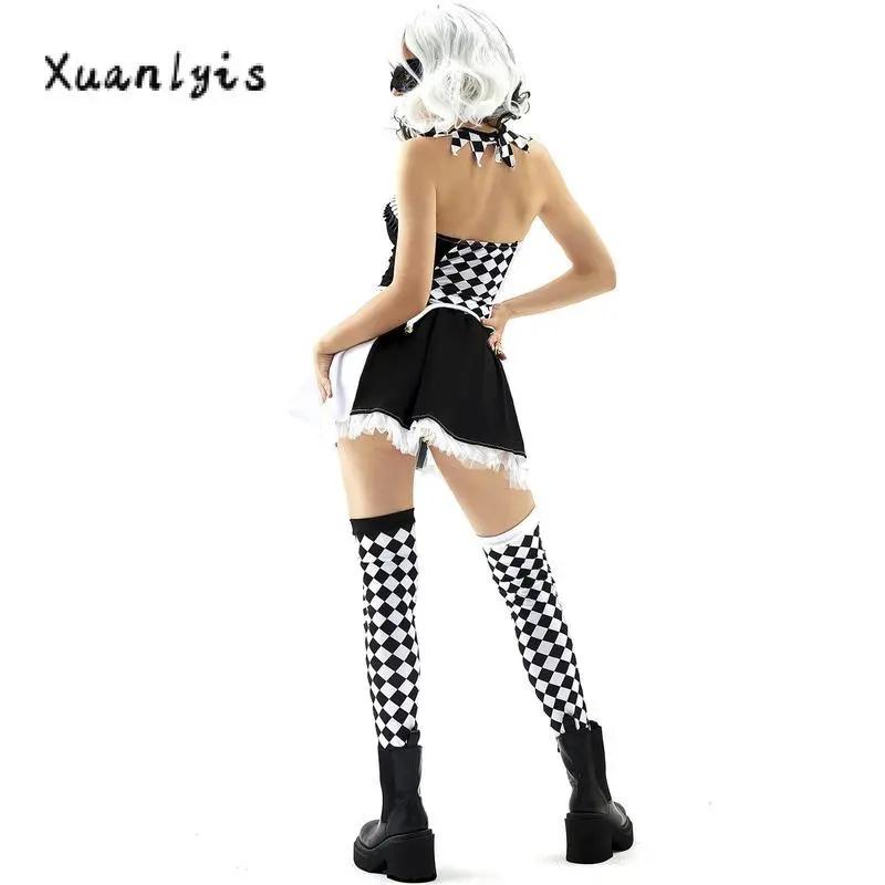 HalloweenClownCostumeforWomenPlaidPrintCircusPartyCostumeTubeTopsSkirtLongSocksSetWomenswearAccessories