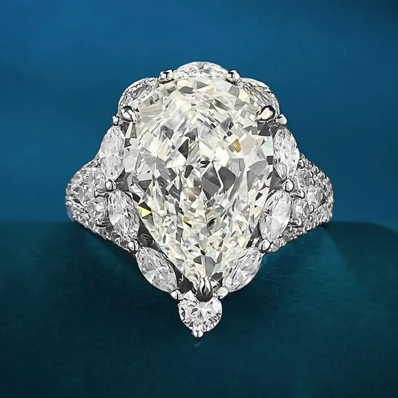 S925 Sterling Silver Ice Flower cut pear-shaped water drop ring 10*14mm 8A cubic zirconia ring fashion jewelry accessory woman Girl promise ring springt-359