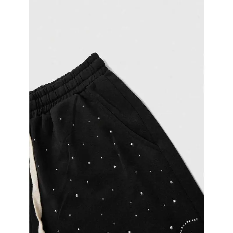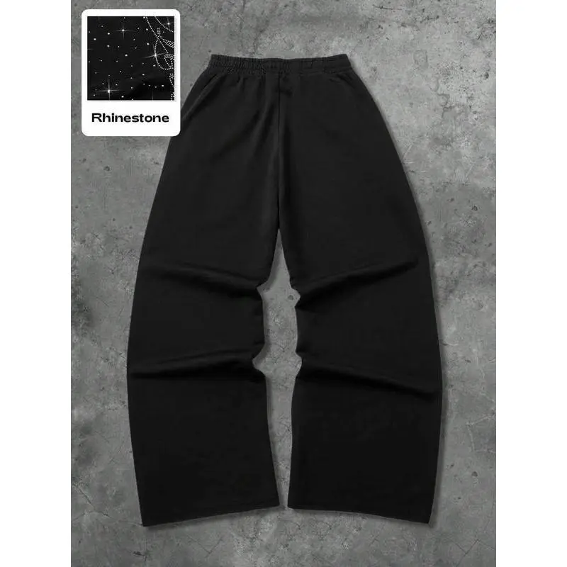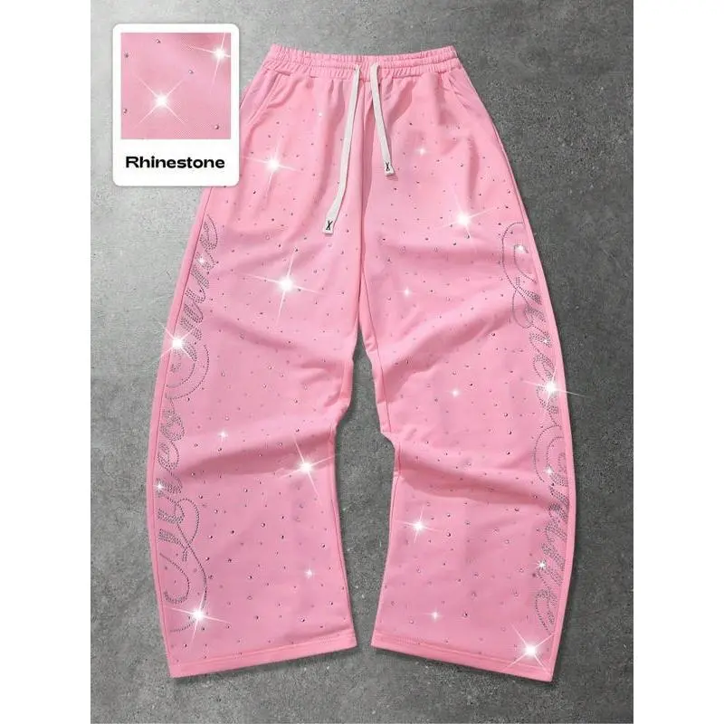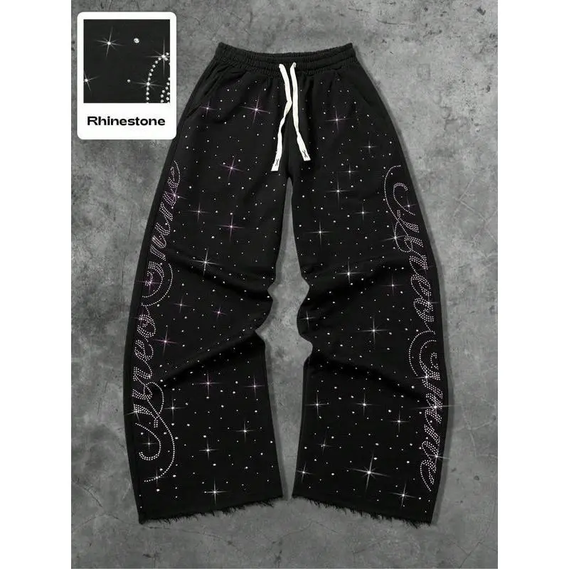 ??Letter Print??: Features bold letter print, enhancing its urban aesthetic and making a strong visual statement on the streets. ??Straight Fit??: Designed with a straight cut, offering a classic silhouette that complements various body types without compromise. ??Unisex Style??: Crafted for both men and women, promoting inclusivity in fashion and enabling diverse style expressions. ??Rhinestone Accents??: Embellished with rhinestones, adding a unique sparkle that distinguishes it from standard streetwear options. ??All Seasons??: Suitable for all seasons, ensuring wearability and adaptability to various weather conditions throughout the year.