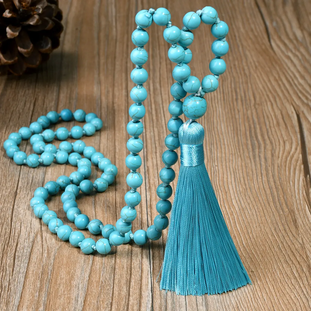Unleash Your Inner Power with the Lapis Lazuli 108 Mala Tassel Beaded Necklace Product Overview Our Lapis Lazuli 108 Mala Tassel Beaded Necklace is a unique piece of jewelry that serves both as a stunning accessory and a powerful spiritual tool. This necklace, which can also be worn as a wrap bracelet, is designed to connect with your solar plexus and heart chakra, helping you align with your purpose and quintessence. Benefits of Lapis Lazuli Frequently Asked Questions Can I wear this as a wrap bracelet? Yes, this necklace can also be wrapped 3 or 4 times around your wrist to be worn as a bracelet. What chakras does Lapis Lazuli connect with? When worn as a necklace, Lapis Lazuli connects with your solar plexus and heart chakra. What are the benefits of Lapis Lazuli? Lapis Lazuli encourages self-awareness, activates psychic abilities, and enhances communication. How many beads are on this necklace? This necklace features 108 high-quality Lapis Lazuli beads. What is the significance of the 108 beads? The number 108 is considered sacred in many Eastern religions and traditions, such as Hinduism, Buddhism, Jainism, Sikhism and connected with yoga and meditation. Embrace the power of Lapis Lazuli and enhance your spiritual journey with our Lapis Lazuli 108 Mala Tassel Beaded Necklace. Order yours today and experience the transformative power of this beautiful piece.