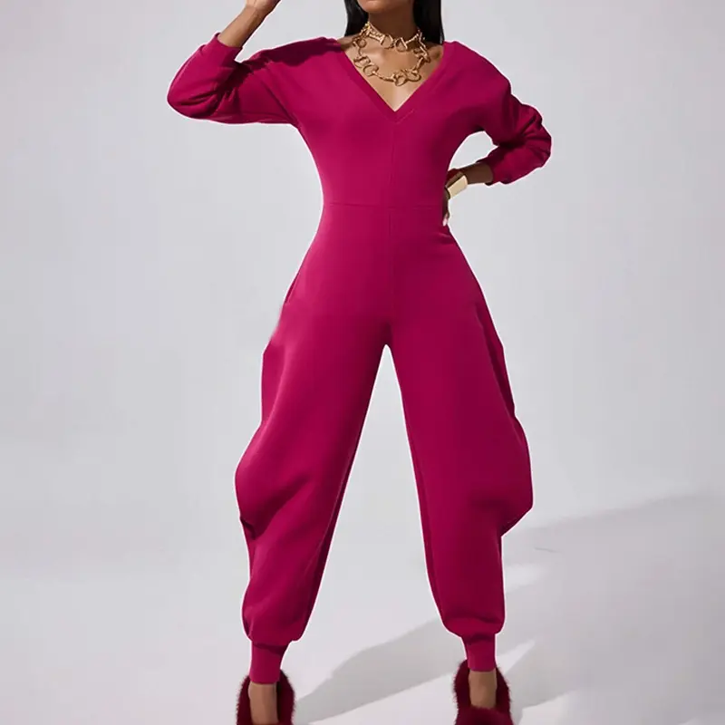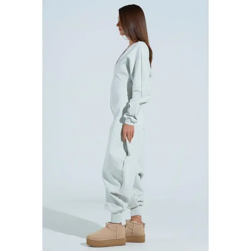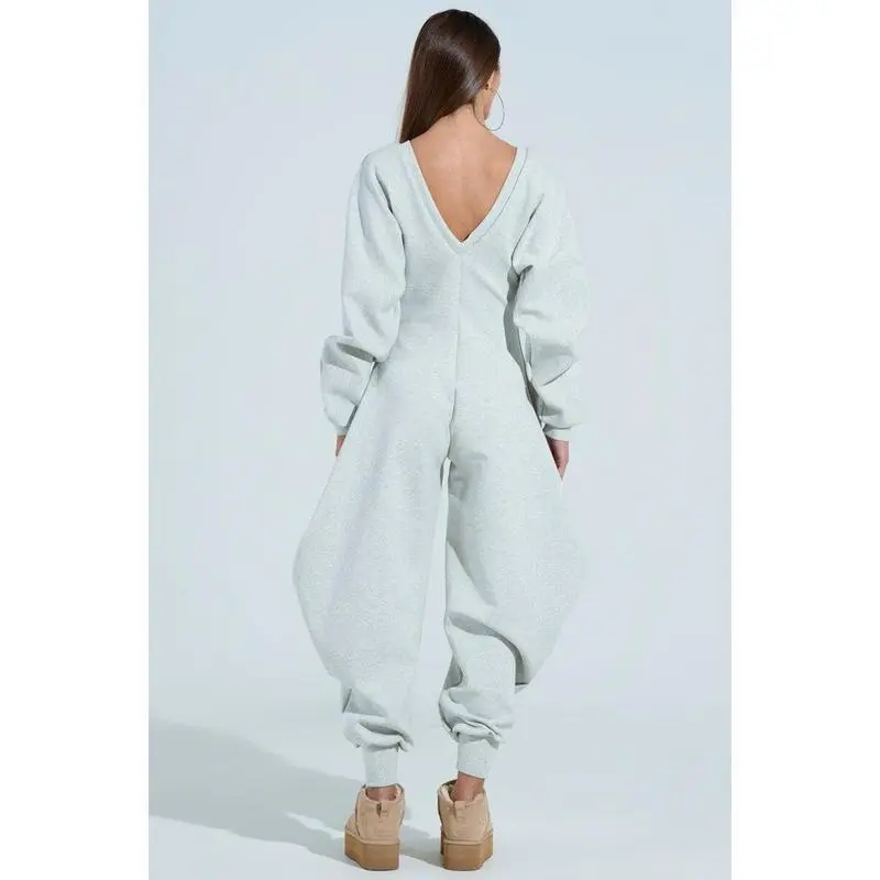 The AKIRA Label Comfy Cozy Sweatshirt Jumpsuit is made from a slightly stretchy cotton sweatshirt base and features a plunging neckline, long sleeves with elastic cuffs, an ultra voluminous leg silhouette, elastic ankle hems, and a pull-on fit. Pair this piece with chunky sneakers and a baseball cap to complete your amped-up casual look. - 100% Cotton- Slight Stretch- Imported(All measurements approximate from size small) - 57. 5" Shoulder to Hem- 32. 5" Inseam - 30" Sleeves- Models are 5��9" and 5��10 ?" and wearing size smallProduct ID: 371740