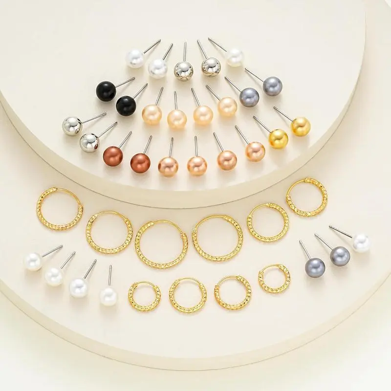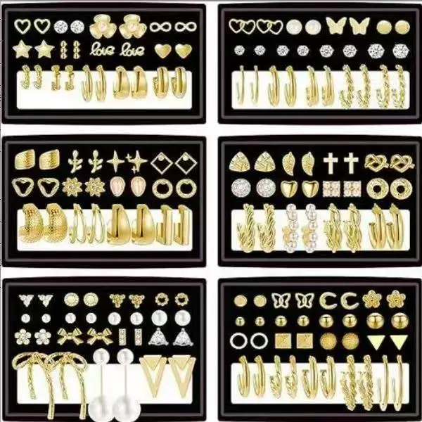 84 Pairs Gold Stud Earrings Set for Women Multipack, Fashion Pearl Zirconia Butterfly Earrings Packs Piercings, Hypoallergenic Stud Hoops Earrings for Gift
