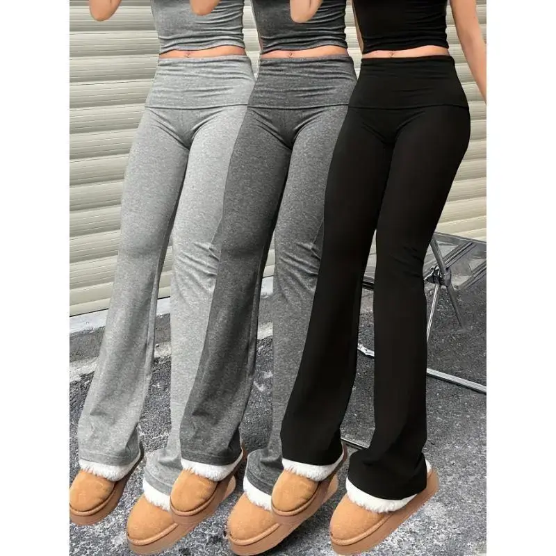 Women's Flared Leggings 3pcs | Polyester & Elastane Blend | Stretchy, Non-Transparent | Machine Washable | Casual Style for Spring/Summer/Autumn | Multi-Color Bell Bottom Pants with Glossy Finish